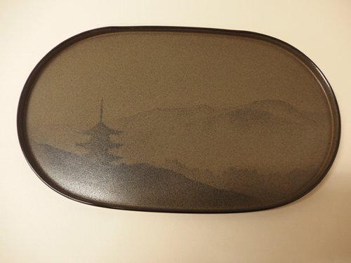 能登の呂色師 升井 克宗氏の作品です。小判プレート 五重の塔の額装品。漆芸。工芸品。中古品。サイズ:額48×38cm程度/プレート30.2×18.1cm程度
