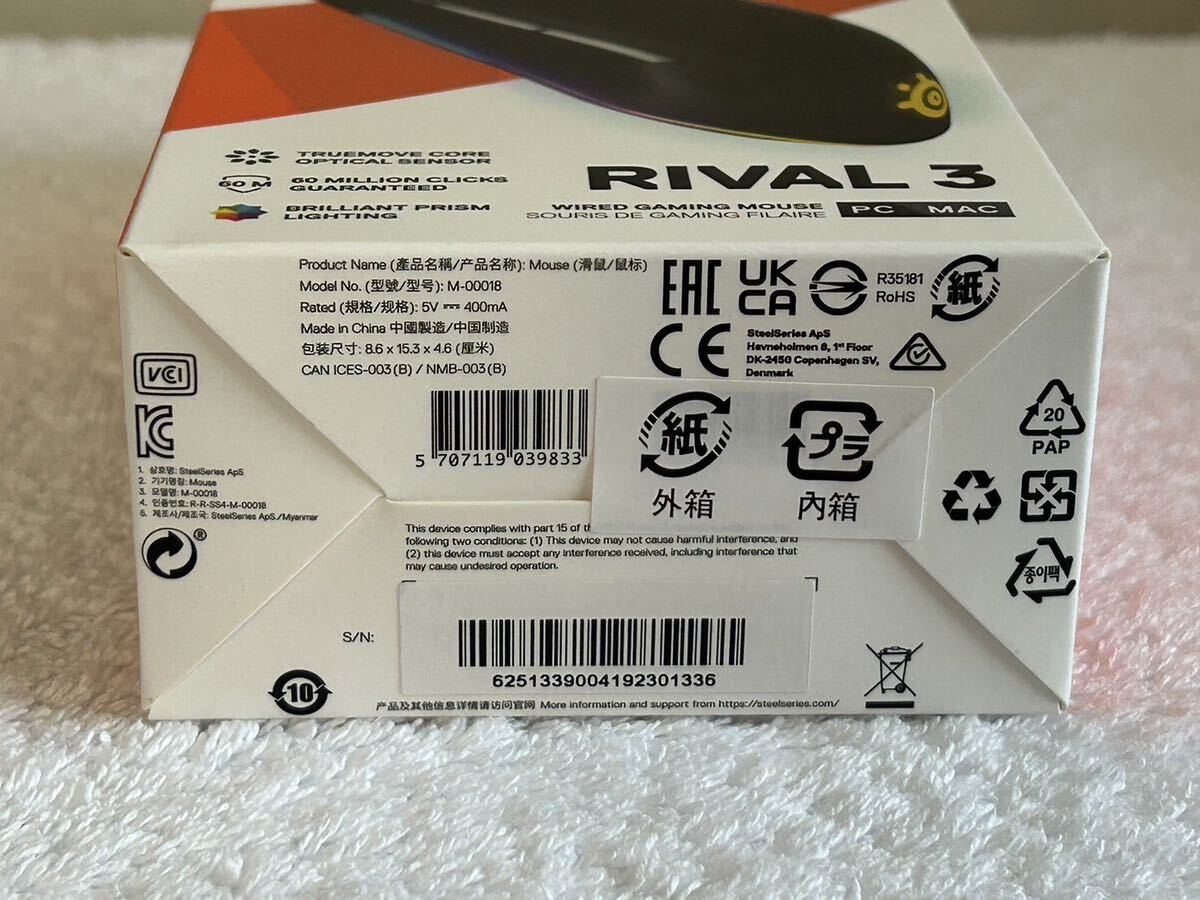 | 新品未使用 RIVAL3 62513 SteelSeries マウス ブラック USB ゲーミングマウス 有線 軽量 低遅延 メカニカルスイッチ 黒 | |