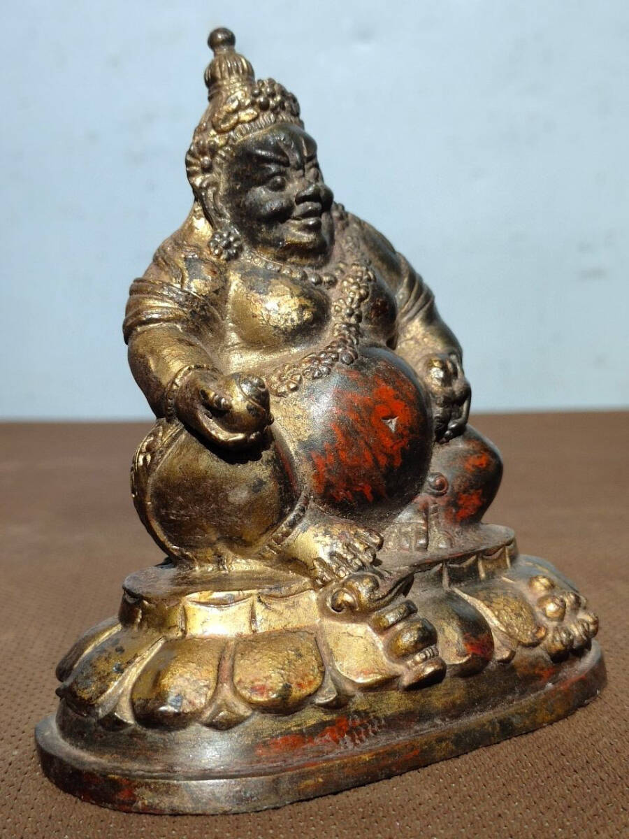 『清・古銅彫・泥金・黄財神像・仏教古美術・供養品』極細工 置物 古賞物 中国古玩 中国古美術