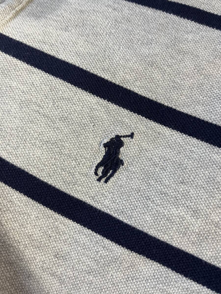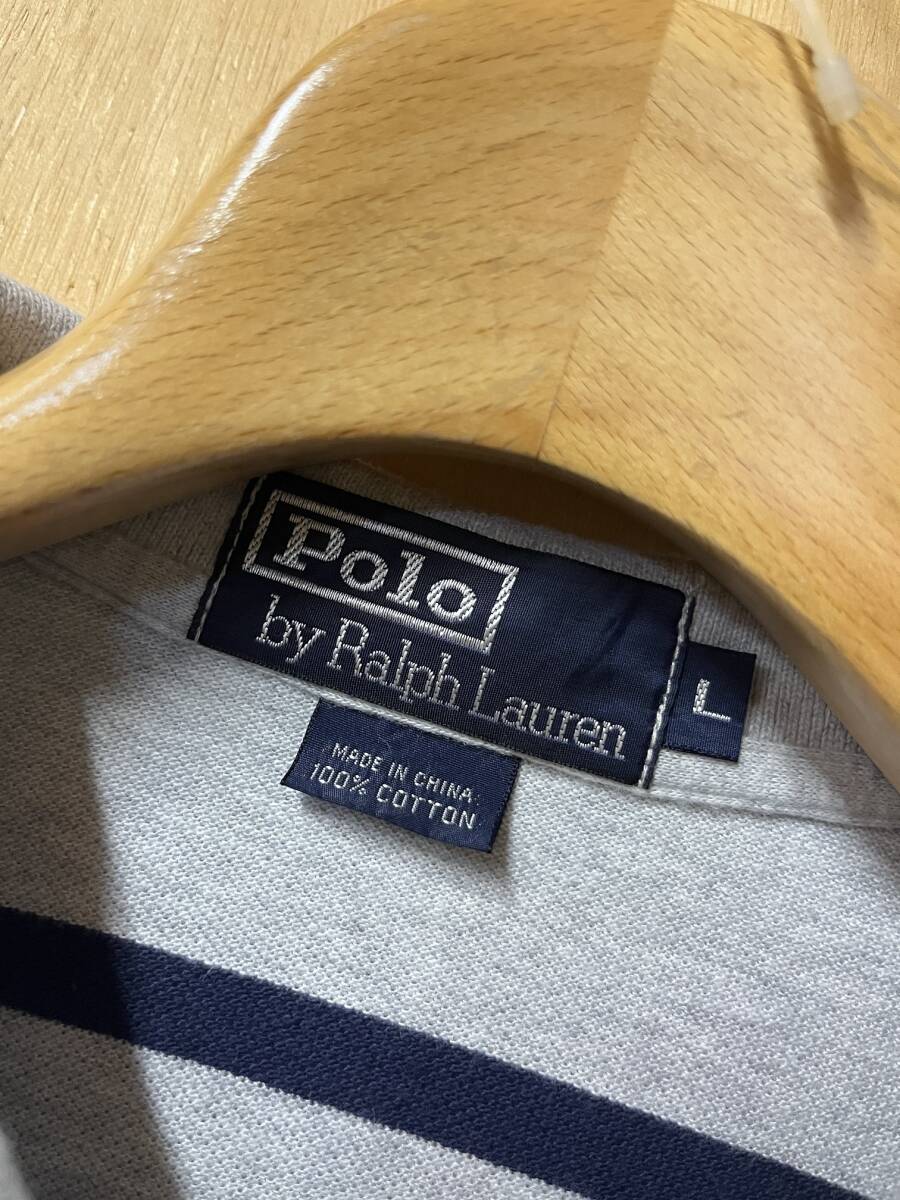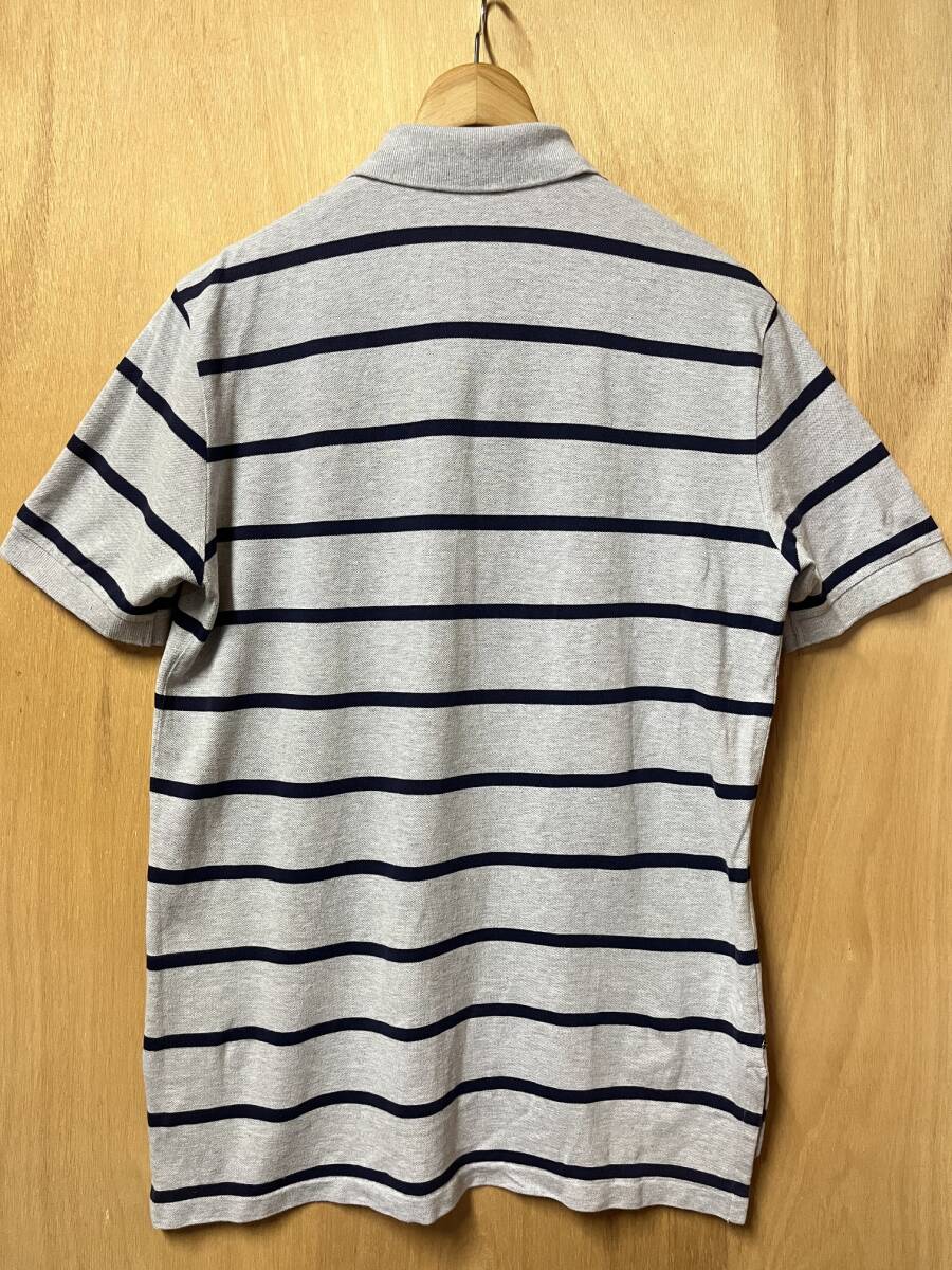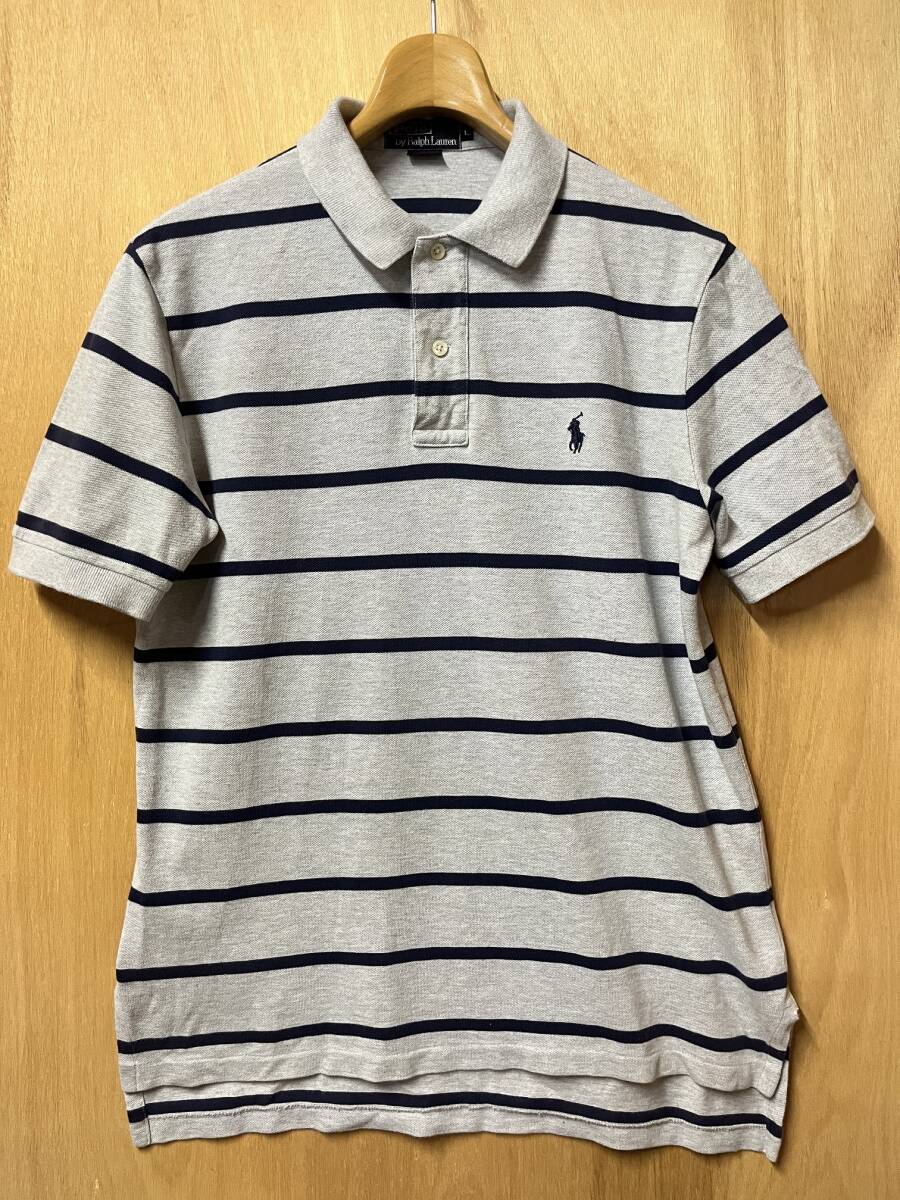 綺麗 90's ビンテージ POLO RALPH LAUREN ポロラルフローレン ボーダー コットン鹿の子 半袖 ポロシャツ グレー サイズL | ||
