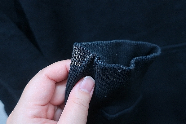 パーカの右袖に汚れ、生地に毛羽立ち、