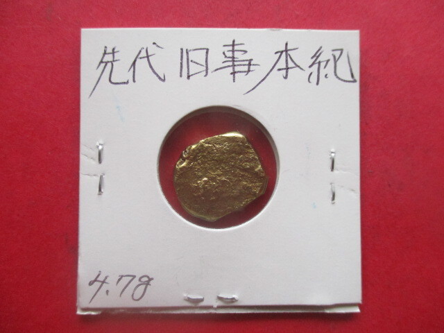 <超古代日本貨幣>天草金 量目約4.7g 先代旧事本紀 金貨 古代九州 天草諸島上島 刻印「単滴」