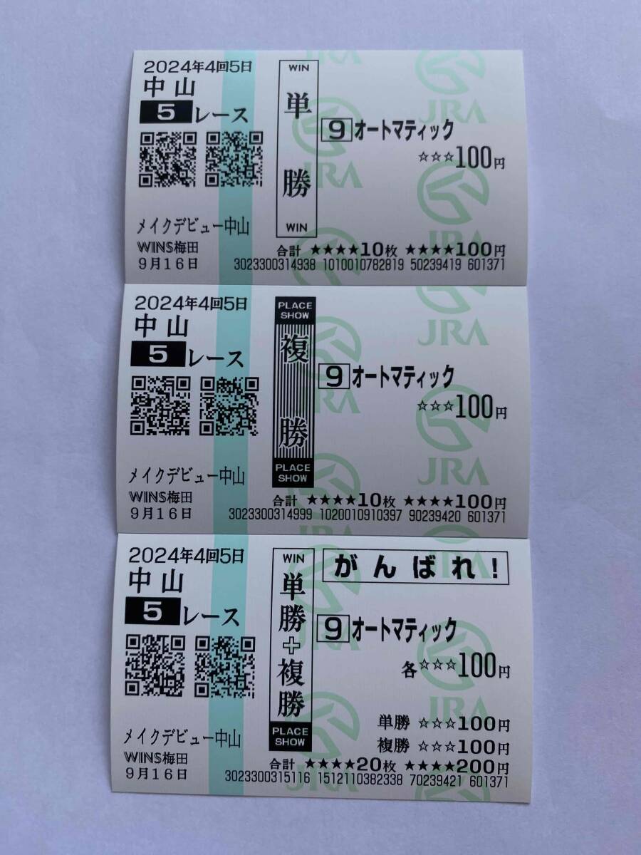 珍名馬券 オートマティック メイクデビュー中山 新馬戦 単・複・応援馬券3点セット Automatic 宇多田ヒカル