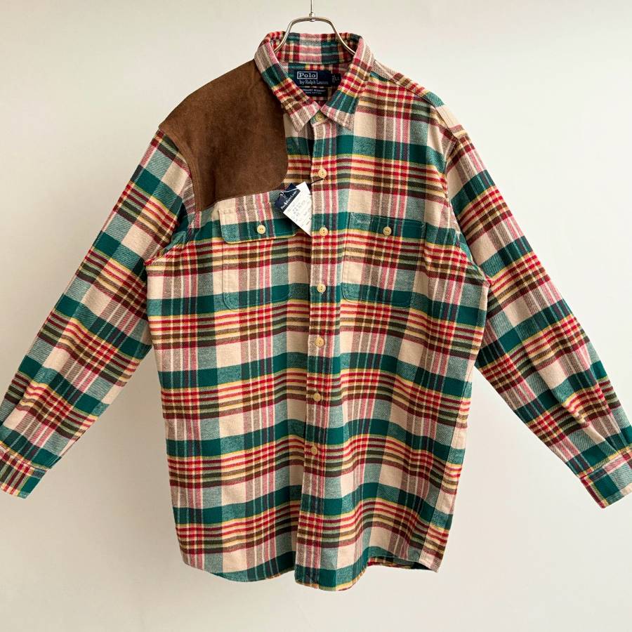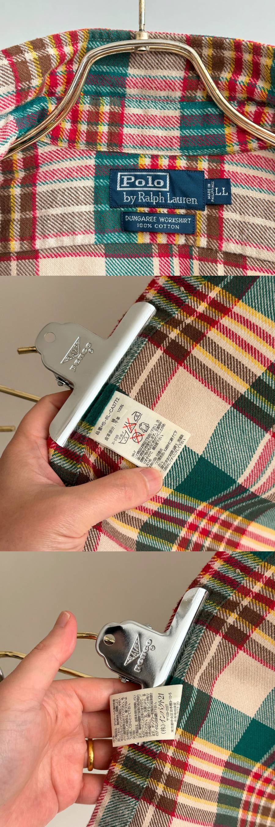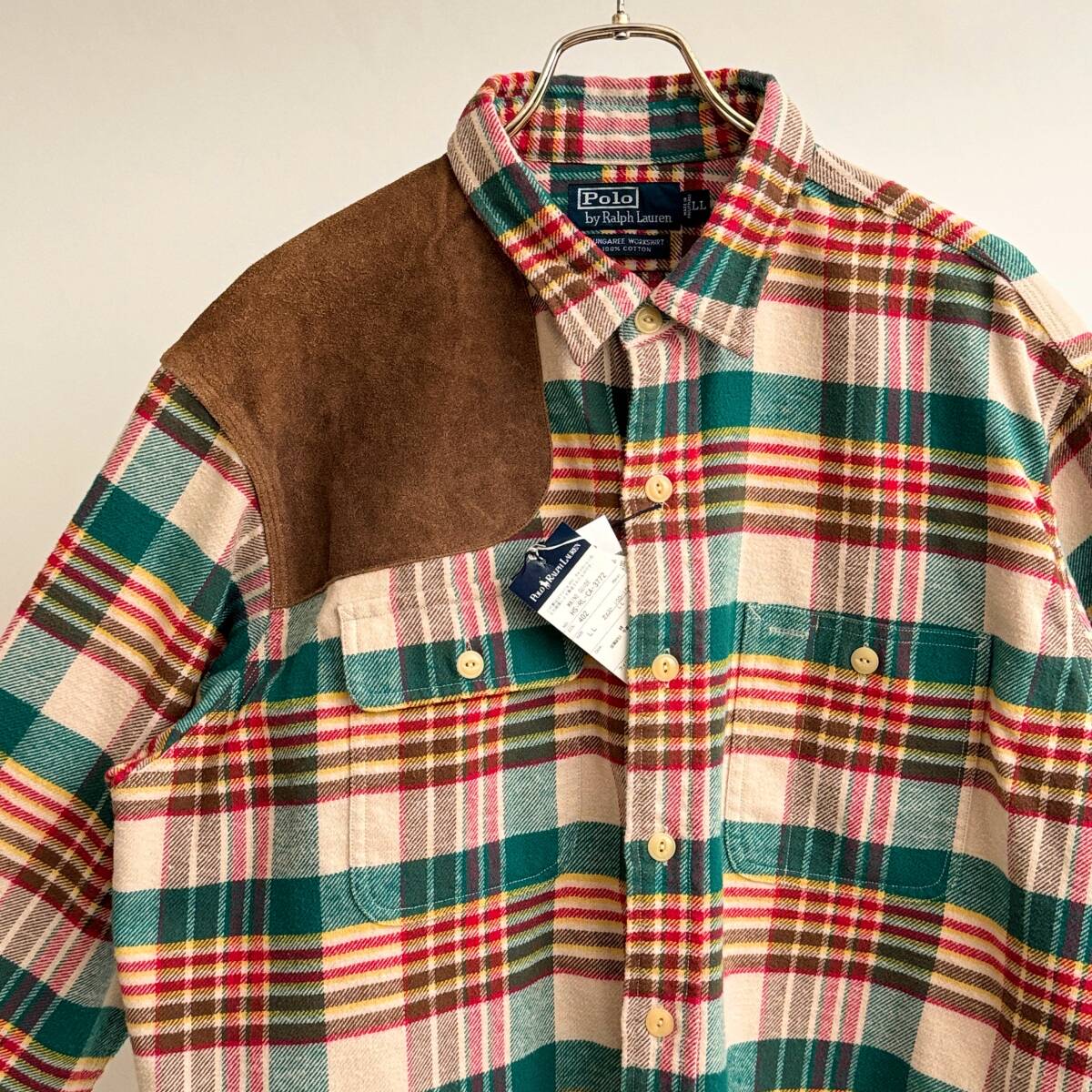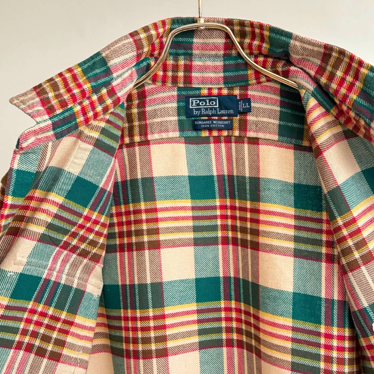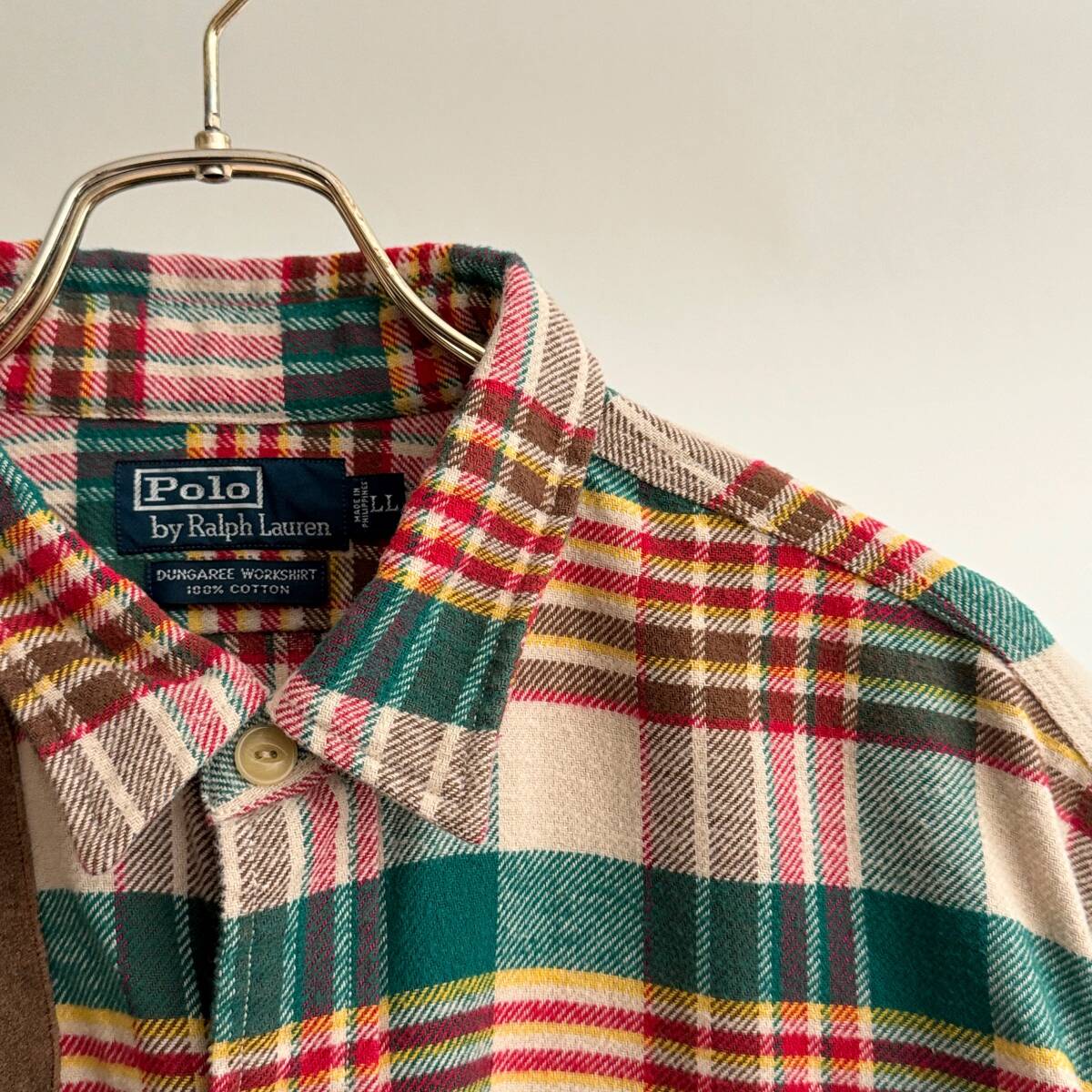 希少《 Dead Stock / Dungaree Shirt / XL 》2000s デッド【 Ralph Lauren スウェード コットン チェック ダンガリー シャツ ビンテージ 】