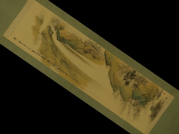 | №2407064【模写】横山春渓【高士観瀑図】◆絹本◆共箱◆掛軸 | |