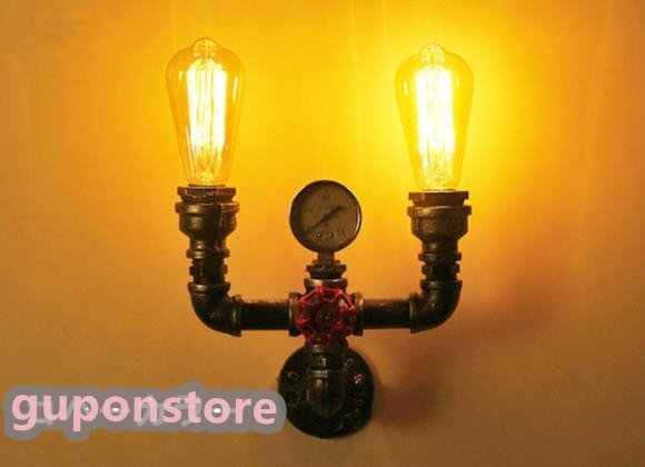 2色選択可 壁掛け照明 ブラケットライト ブラケット  男前 水道管 照明 2灯 レトロ風 玄関灯 壁取
