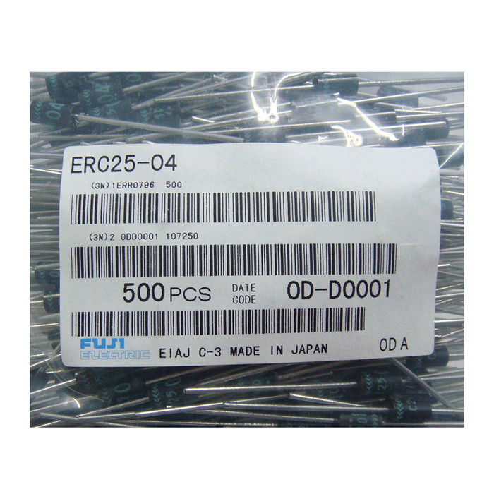 | Type:高速整流ダイオード(FRD) 型番:ERC25-04 メーカー:FUJI パッケージ:アキシャル 製造国:日本(Japan) | |