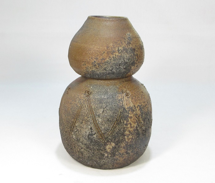 こちらは 備前焼 藤原和 窯変 瓢形彫文 花器 花入 花瓶 共箱 栞付 です。