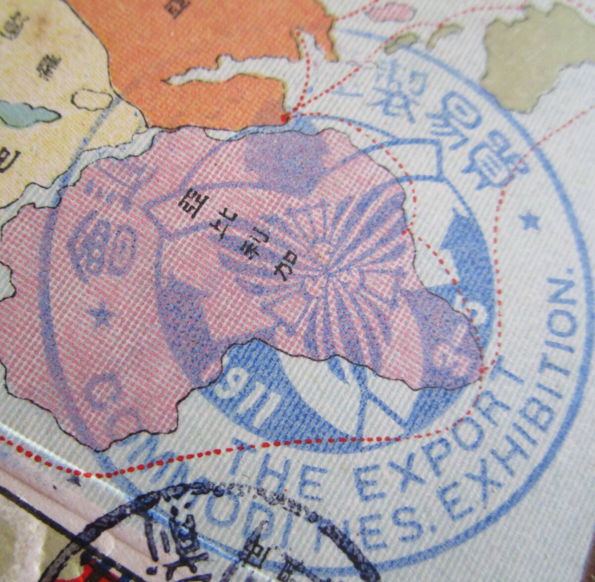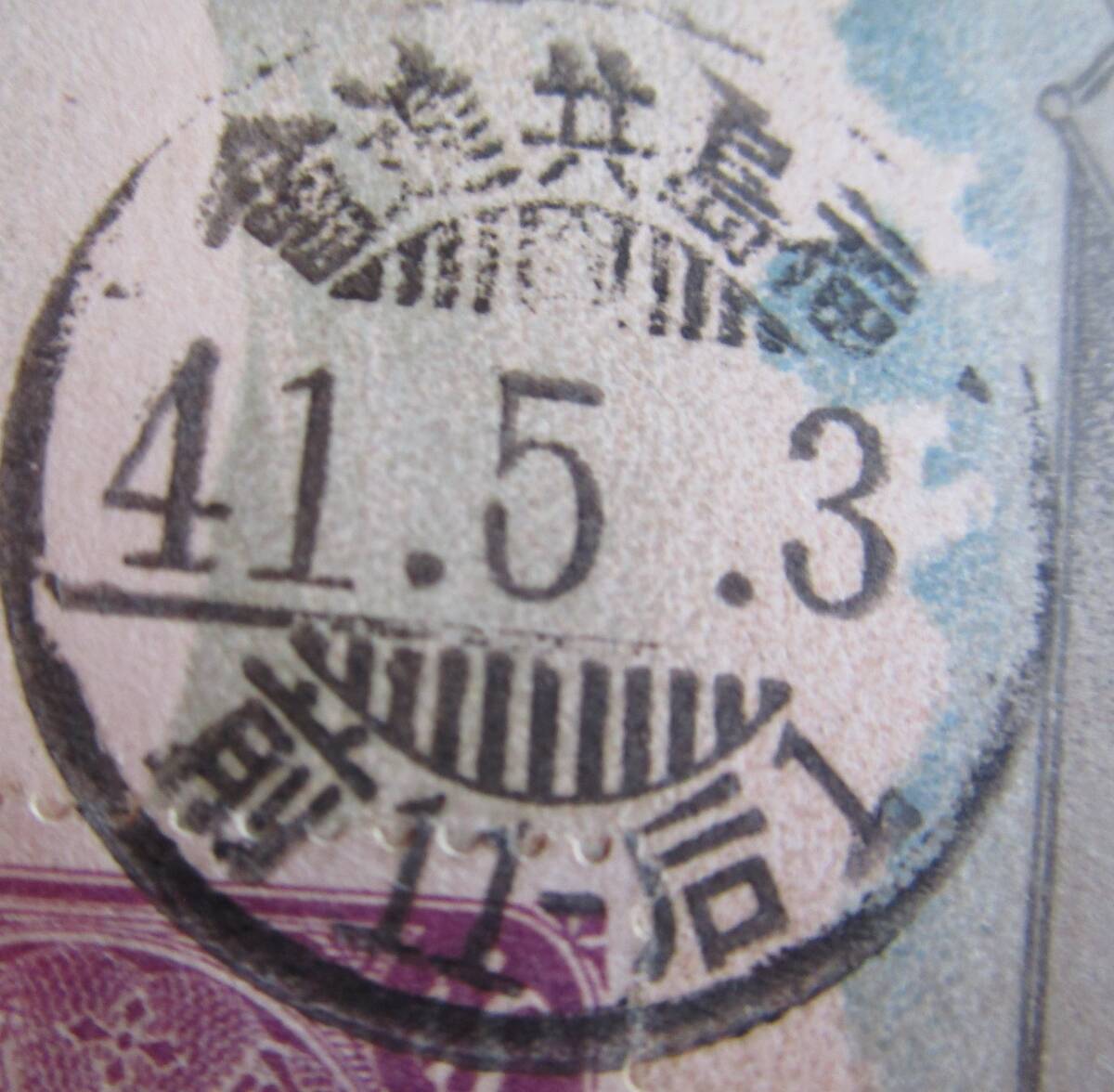 1、日露戦役凱旋記念切手1・5銭貼・櫛型印甲府共進会39・11・9消(画像3参照)、余白に記念特印(画像4参照)、非実逓。