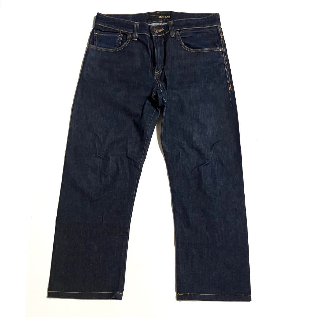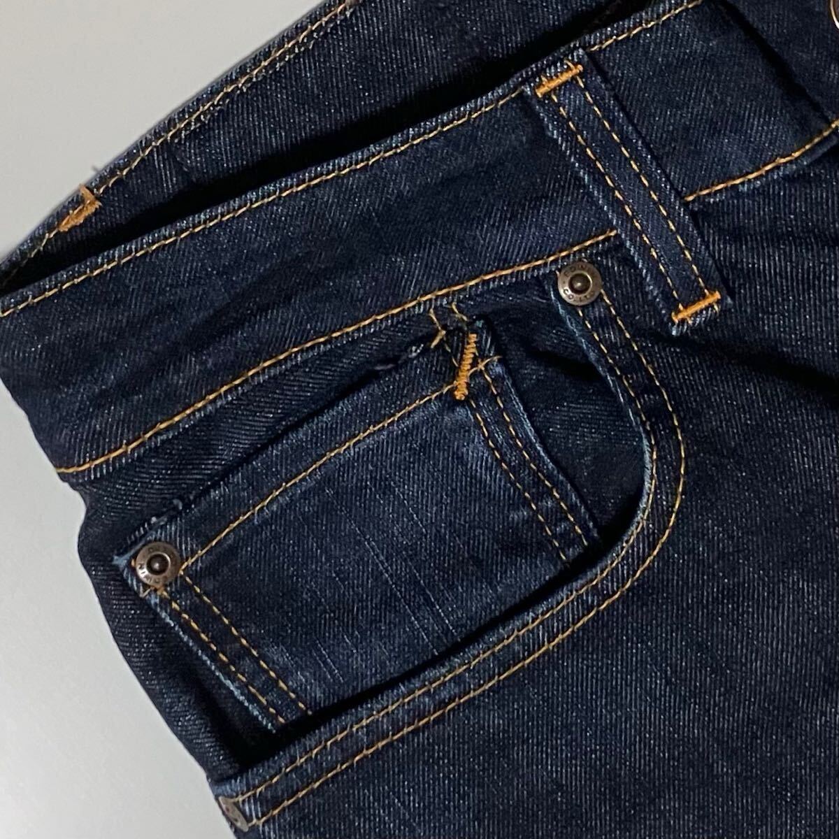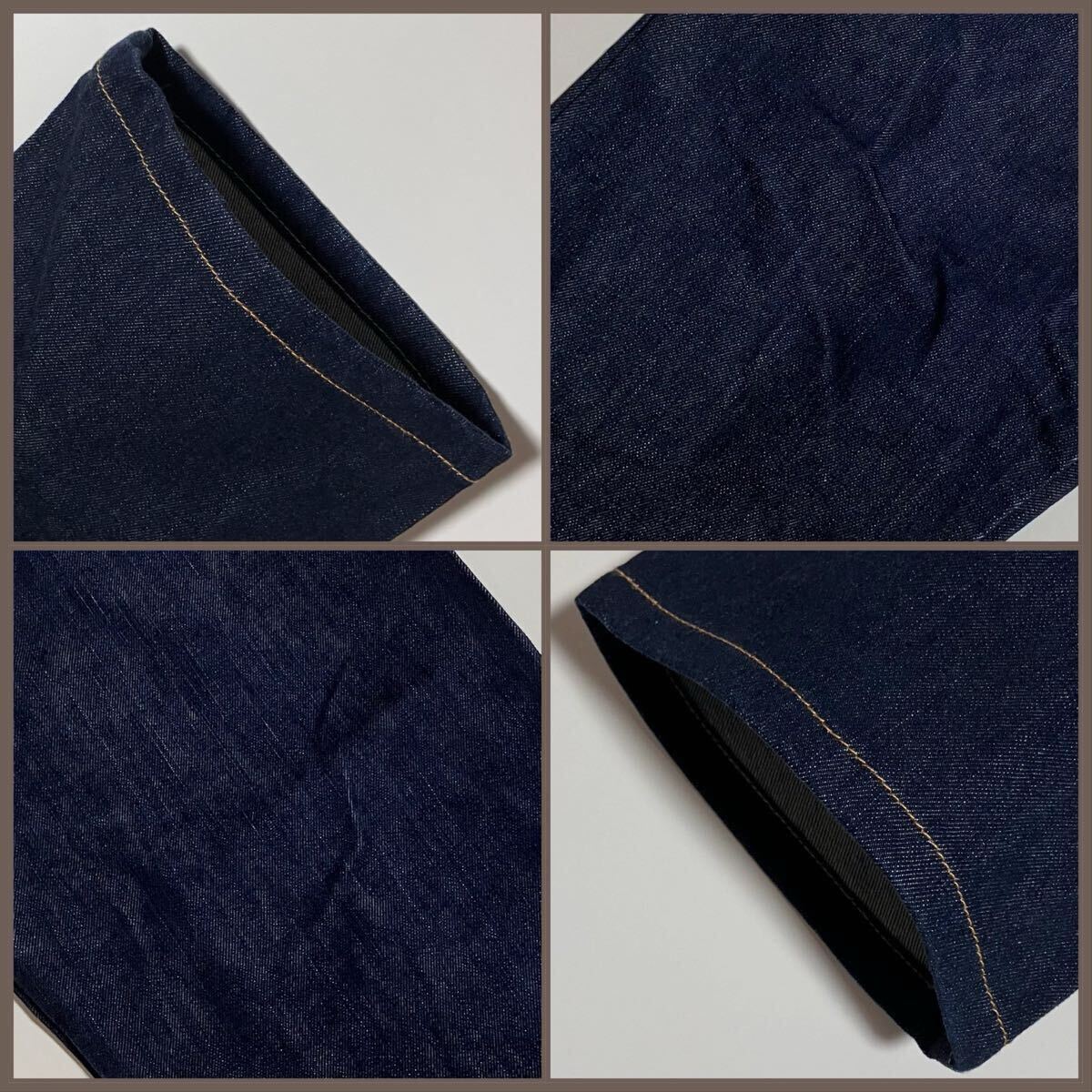 ルックスは少しばかり洗い晒し感を滲ませたなかなか濃い目のデニムブルーとストレートスタイルの組み合わせ。丈は補正済みの為、サイズが合う方は補正なしでそのままお召しになれます。