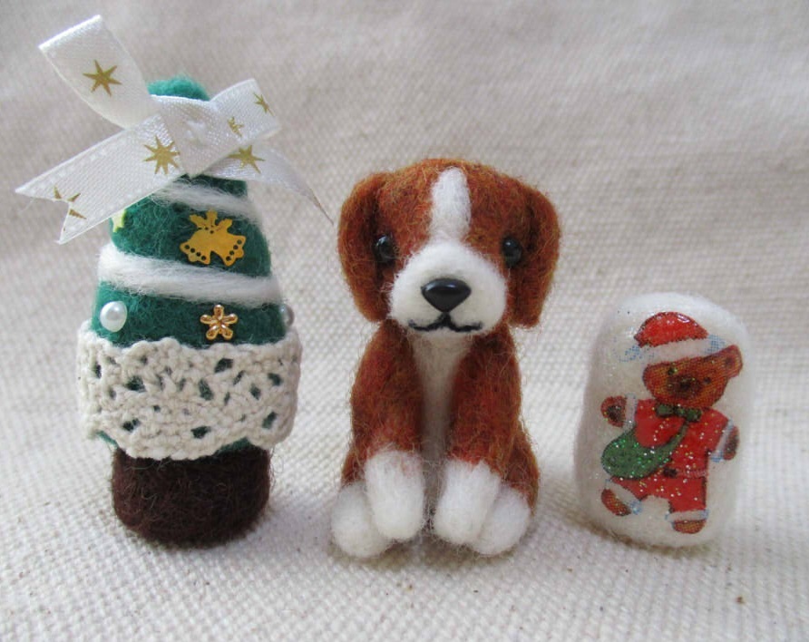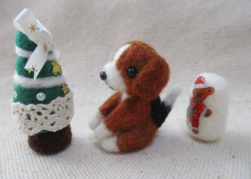 ハンドメイド 羊毛フェルト ビーグル クリスマス ツリー 犬 ぬいぐるみ 1/6ドール ミニチュア リーメント 置物 ドール用 ペット フィギュア