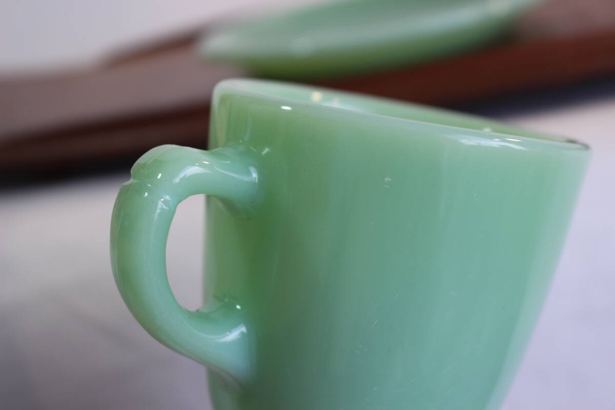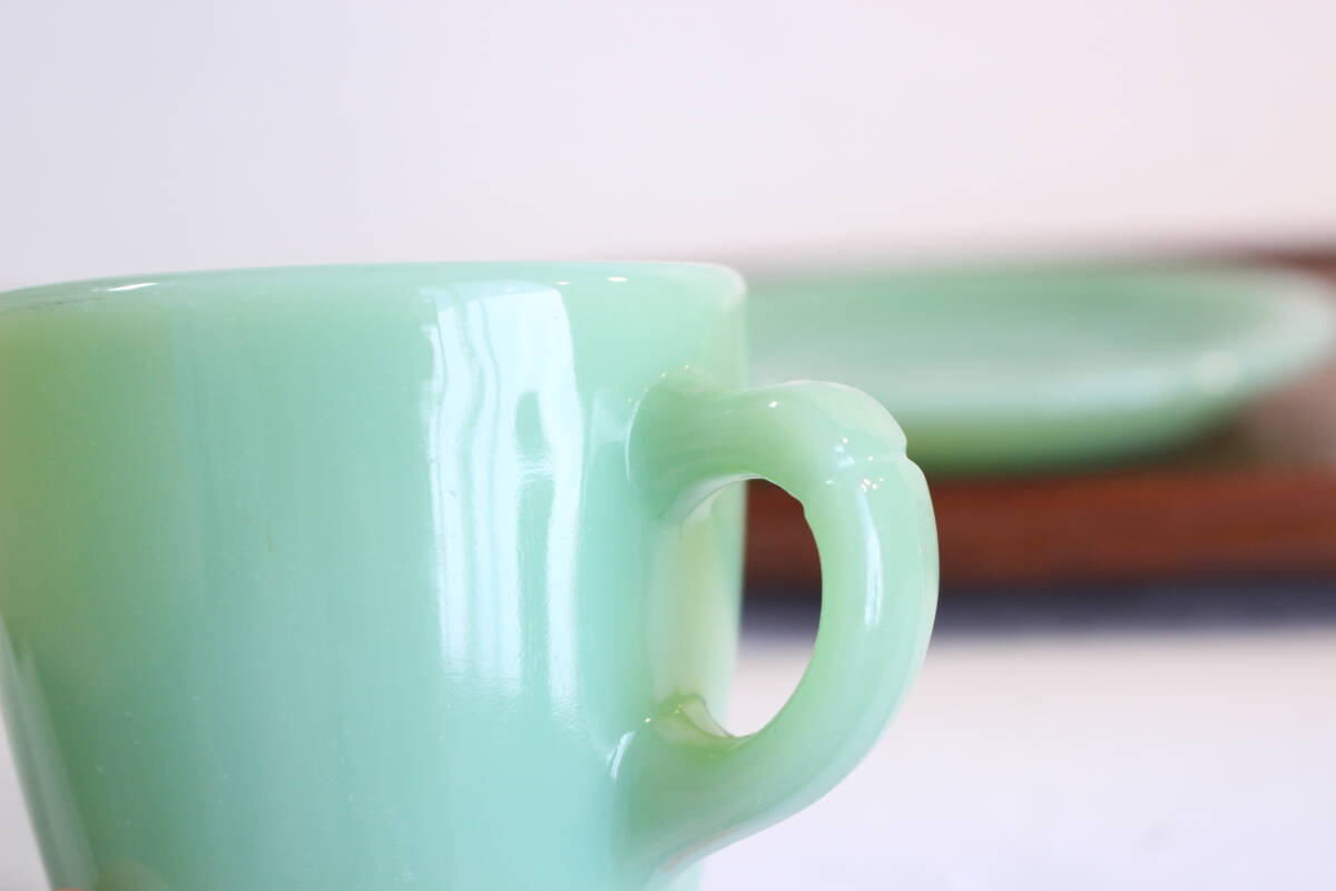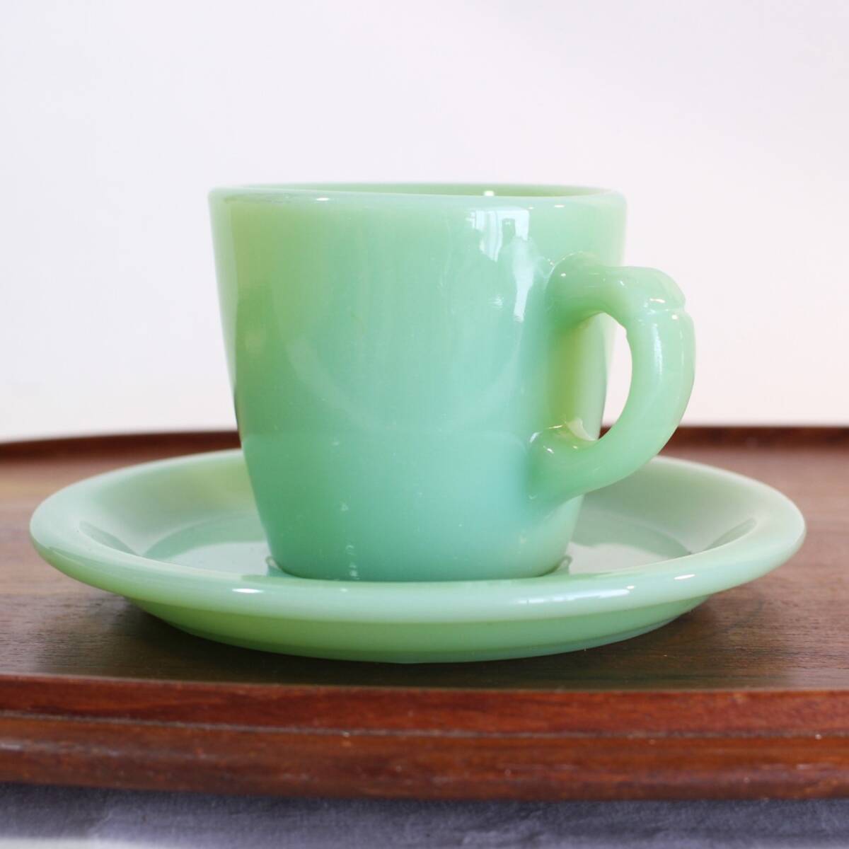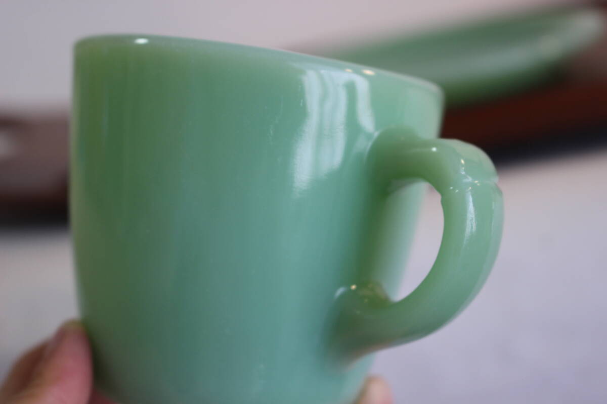 【送料無料】美品! 1客 1950~60年頃 ファイヤーキング FIRE KING ジェダイ ストレート カップ&ソーサー 取っ手製造ミス? イレギュラー