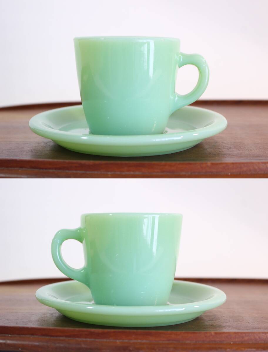 【送料無料】美品! 1客 1950~60年頃 ファイヤーキング FIRE KING ジェダイ ストレート カップ&ソーサー 取っ手製造ミス? イレギュラー ▼BH-6▼