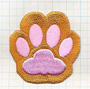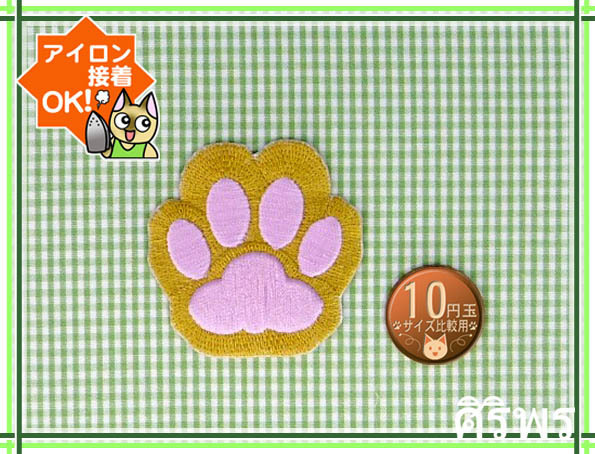 アイロンワッペン/刺繍/アップリケ/にゃんとピンクな肉球M/薄茶/ねこネコ/茶トラ猫色/ストアオリジナル