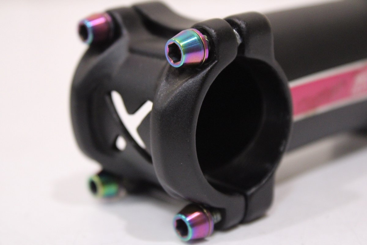 | 仕様 | ステム長:90mm 実測重量:135g 対応コラム径:Φ28.6mm(OS オーバーサイズ) クランプ径:Φ31.8mm |
