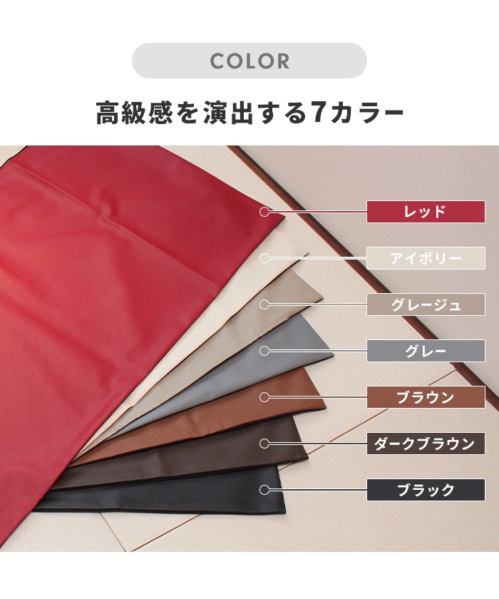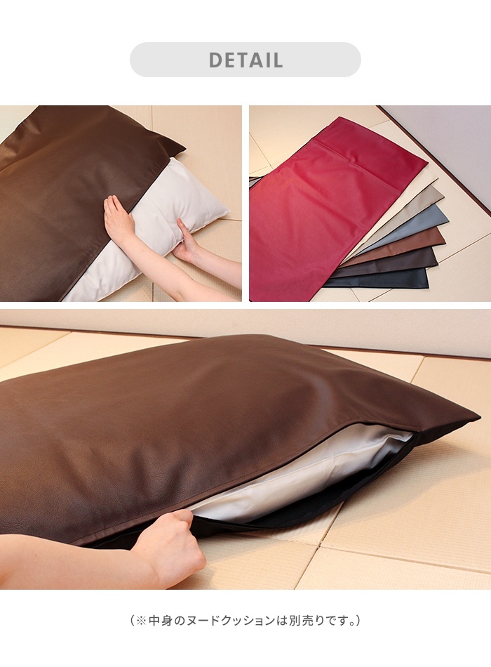 | 高級感のある合皮レザーを使用した60×180cm用長座布団カバー。 ファスナー付きでお手持ちの長座布団を出し入れするのも簡単。 ペットの毛やホコリもつきにくく、水や汚れに強いレザー素材を使用しているので、万が一飲み物や食べ物をこぼしてもサッとふき取ることができます。 (いずれのカラーも底面は黒のナイロン系生地となっております。) ※カバーのみの販売ページのため、中身用座布団は付属しておりません。別途ご用意ください。 |