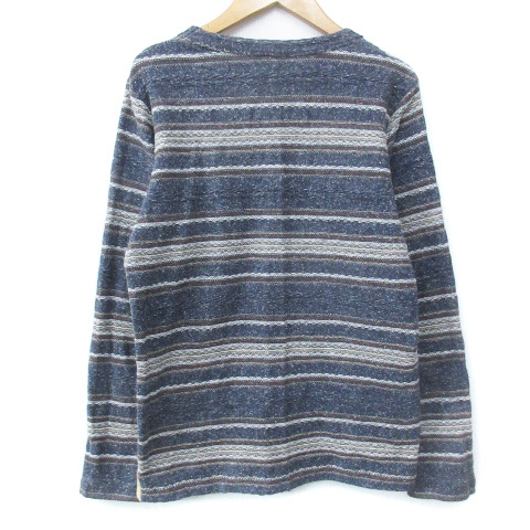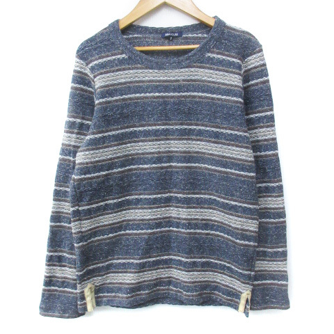 アバハウス ABAHOUSE カットソー 長袖 ラウンドネック マルチボーダー柄 2 M 紺 白 ネイビー ホワイト /FF36 メンズ