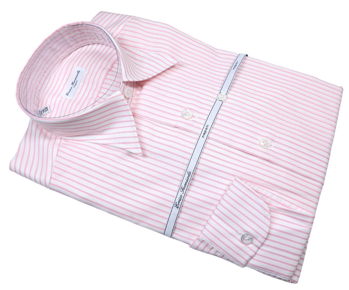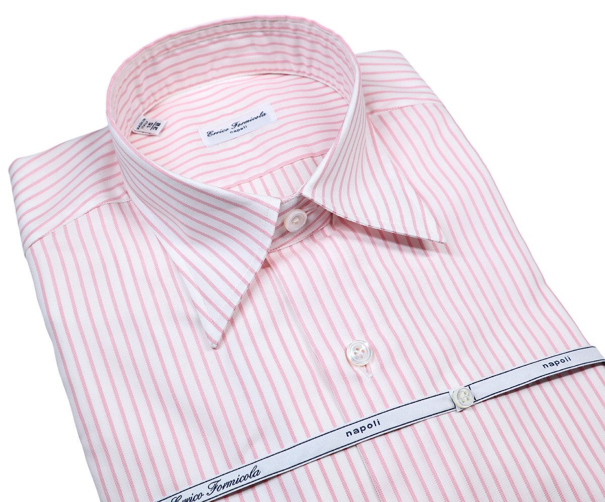 洒脱なピンクストライプ!【 Errico Formicola / エリコ フォルミコラ (伊 】肉厚な白蝶貝ボタンがリッチな ナポリ仕立てドレスシャツ