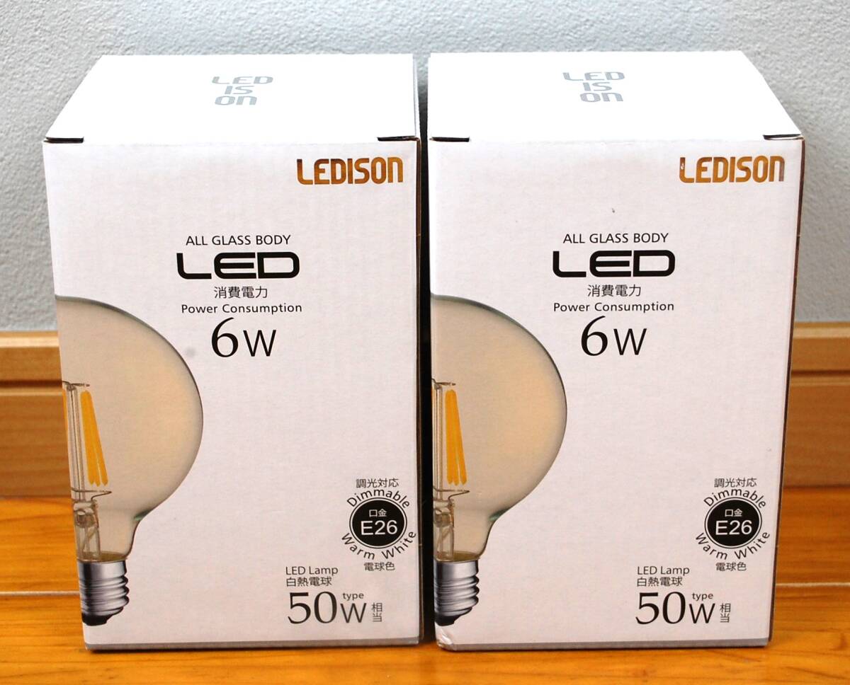 001【お得な2個セット】■即納 LEDフィラメント電球 ボール型 電球色(2,200K オレンジ色強)6W 調光対応★レトロランプ(アンバー加工)