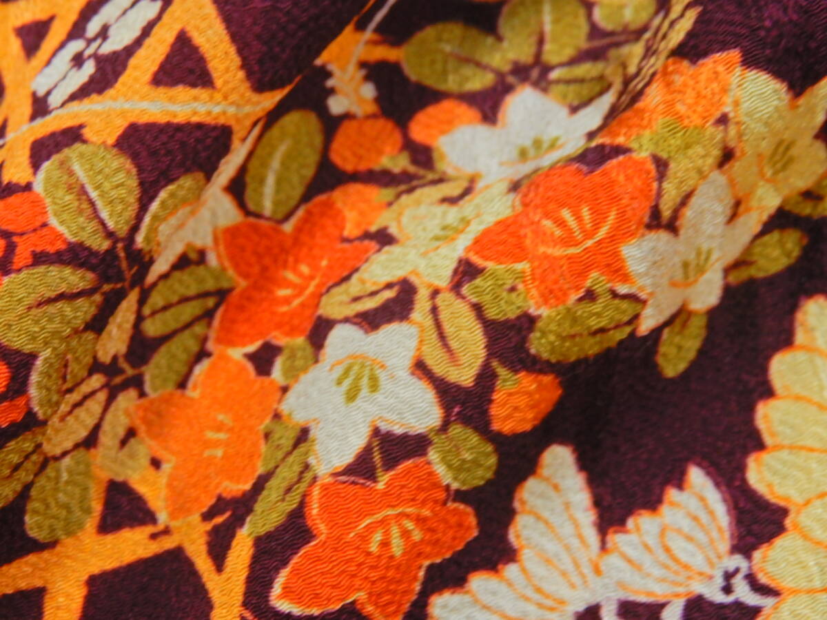 ベース生地の色は濃い赤紫色に近いと思われます。
