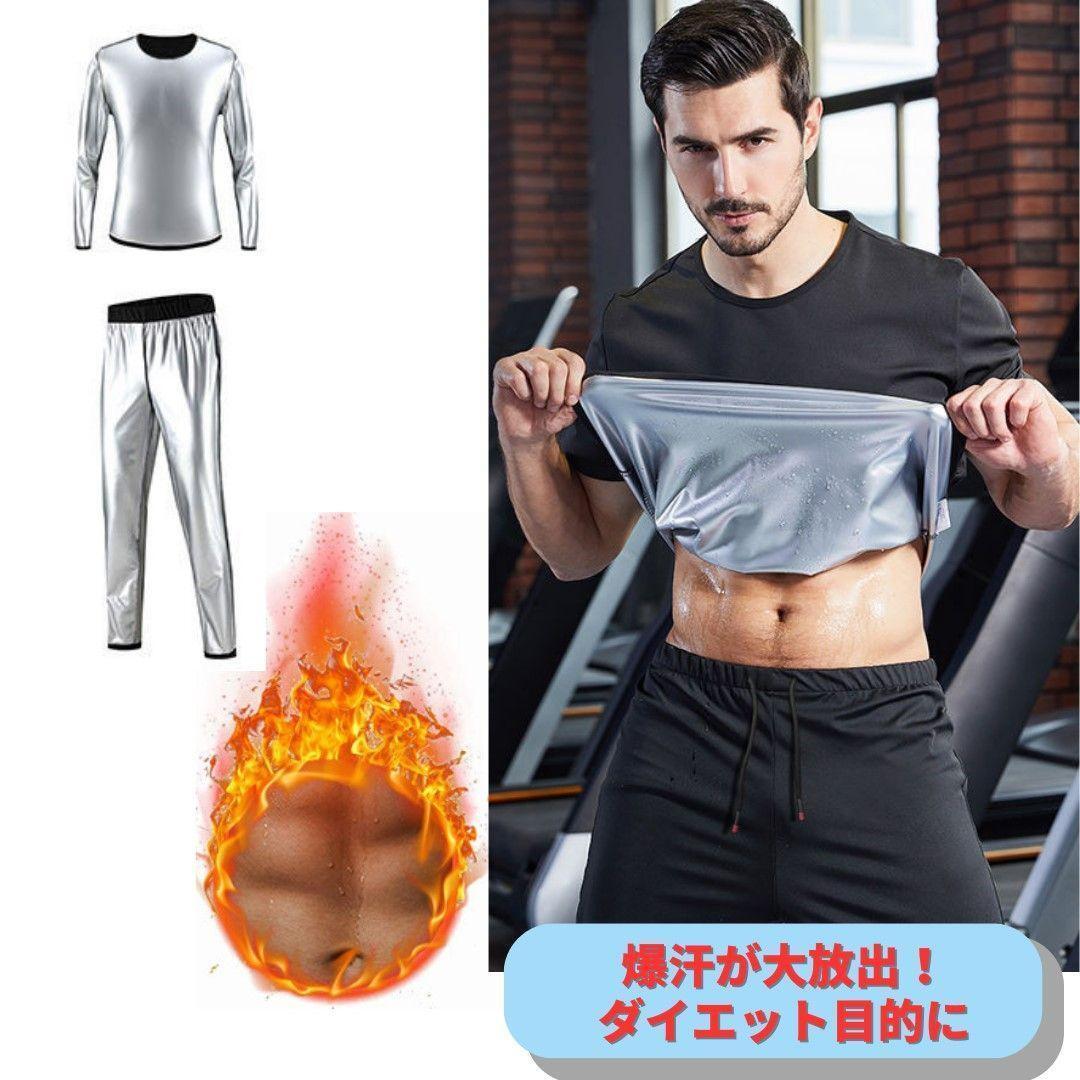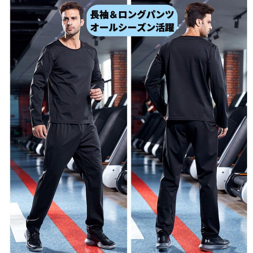 保温性 伸縮性 シンプルデザイン 2点セット 抗菌 長袖 ジャケット パンツ 無地 発汗 爆汗放出 絶食 断食 減量 体重減少 ウェイトダウン