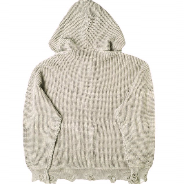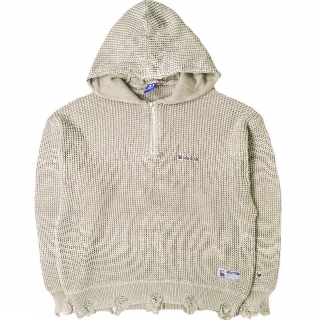 ストーンウォッシュによって独特な色落ちを表現したニットフーディー。
