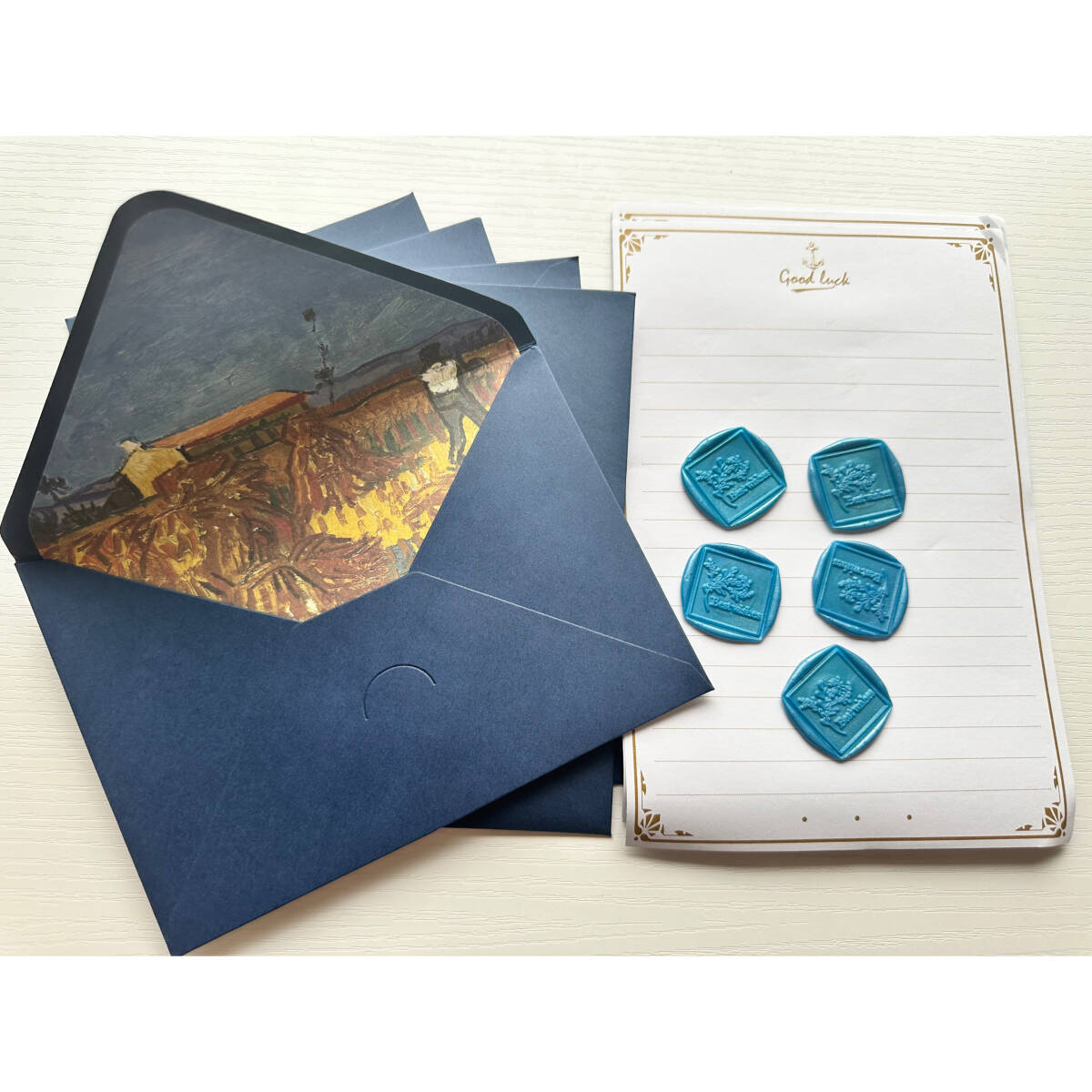 ●便箋12枚 封筒5枚 シール5枚 レターセット 北欧風 挨拶状 お礼 メッセージカード 感謝 ギフトカード ブルー
