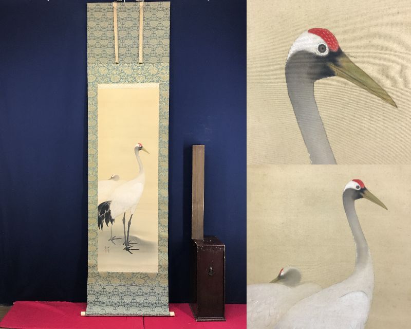 真作/西沢笛畝/双鶴図/ツル図/祝掛軸/正月掛軸/掛軸☆宝船☆AH-651
