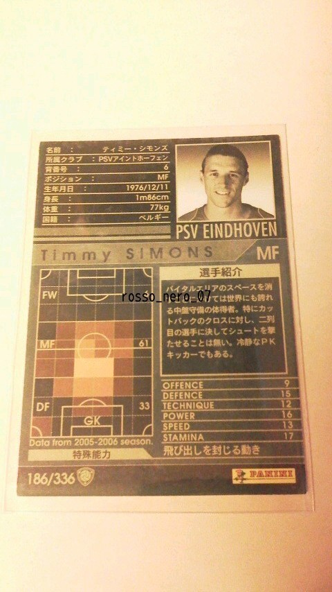 ☆WCCF2005-2006☆05-06☆186☆白☆ティミー・シモンズ☆PSVアイントホーフェン☆Timmy Simons☆PSV Eindhoven☆