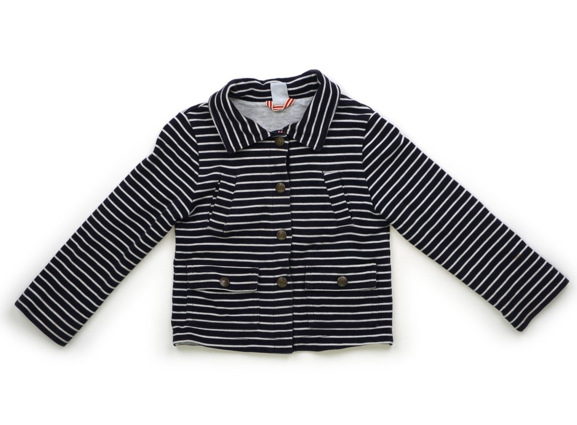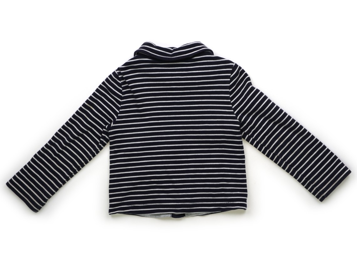 綿100%。カットソー素材二枚仕立て。実際のサイズ表記は、108cm。袖口と首元が薄く汚れています。全体的に毛羽立ちが目立ち、使用感があります。
