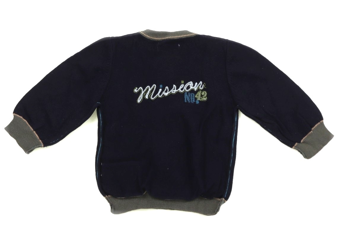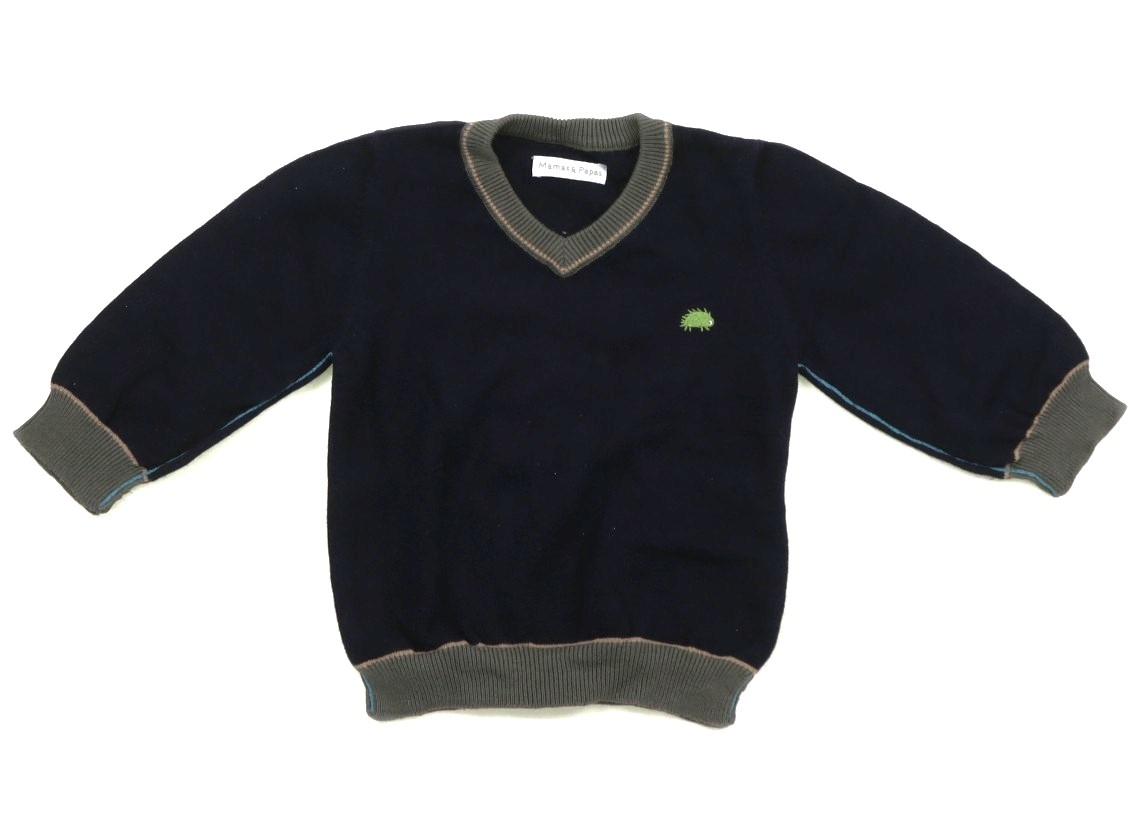 実際のサイズ表記は9-12Mです。コットンニットです。細かい毛玉と洗いざらし感はありますが、まだまだお使いいただけそうです。