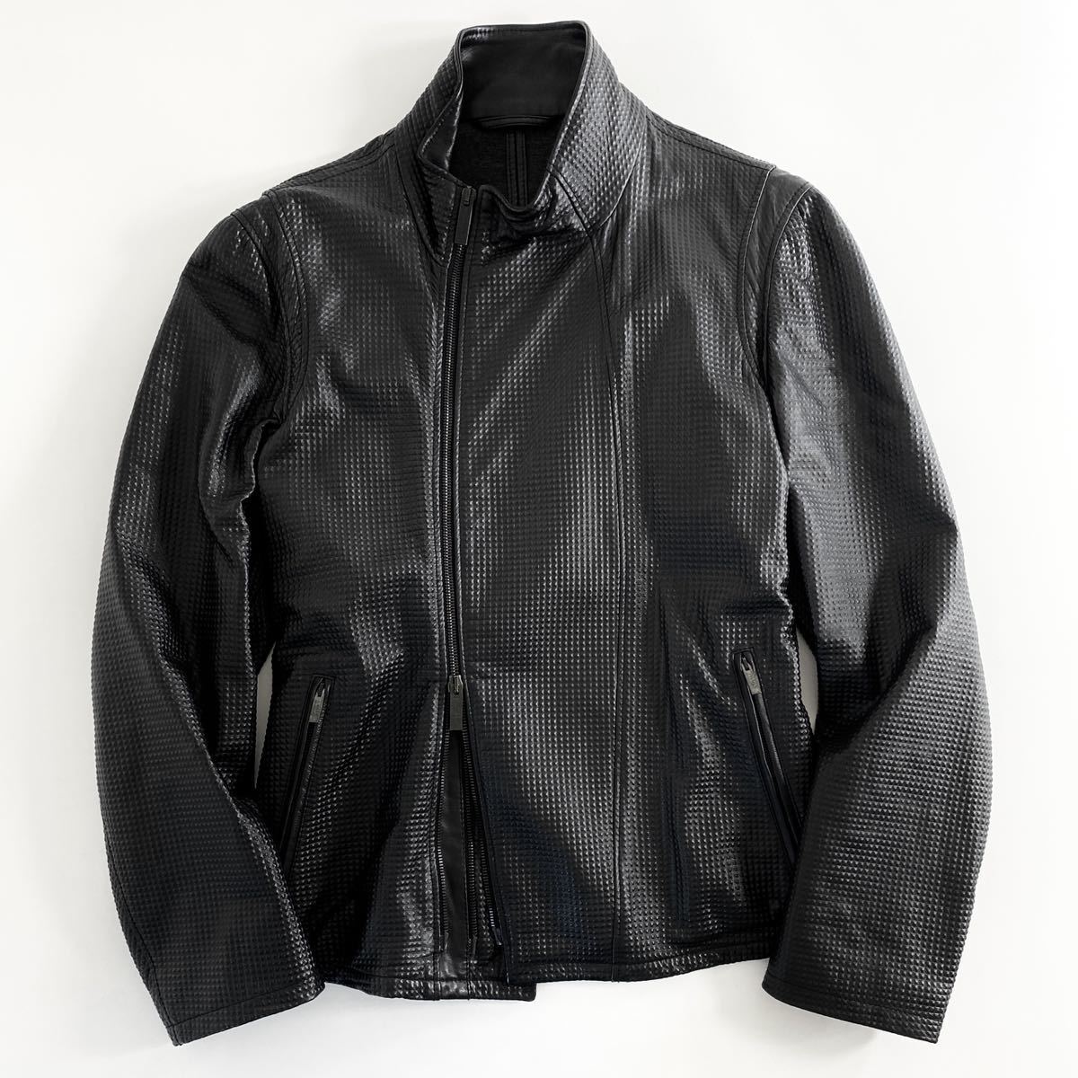 ★新品★幻!稀少★ARMANI COLLEZIONI◆アルマーニコレツィオーニ ラムナッパレザー シングル&ダブルライダース ジャケット クロコ型押し バイカー ブルゾン 羊革42万円 - イタリア製 -