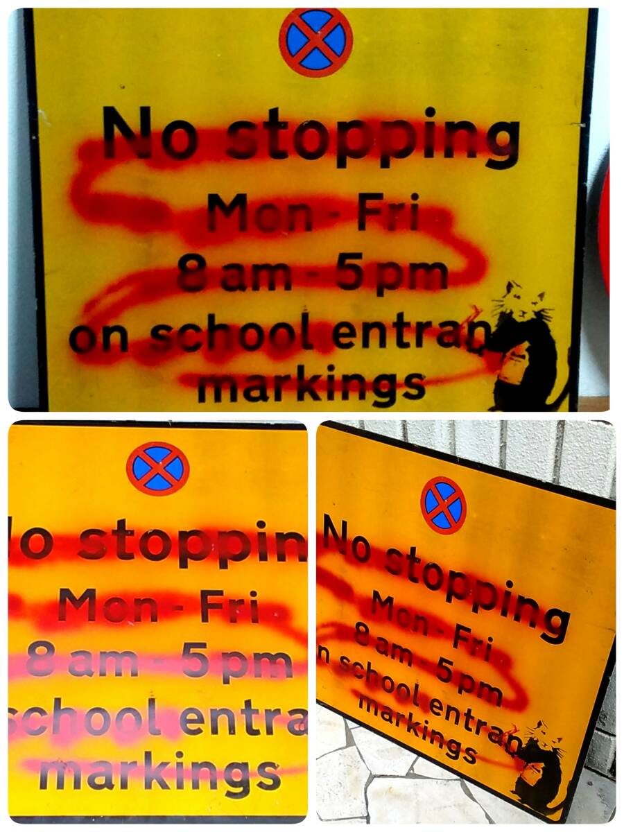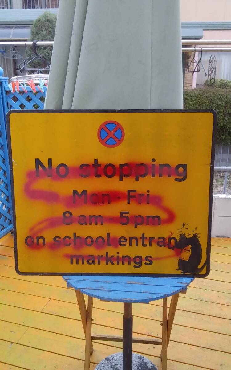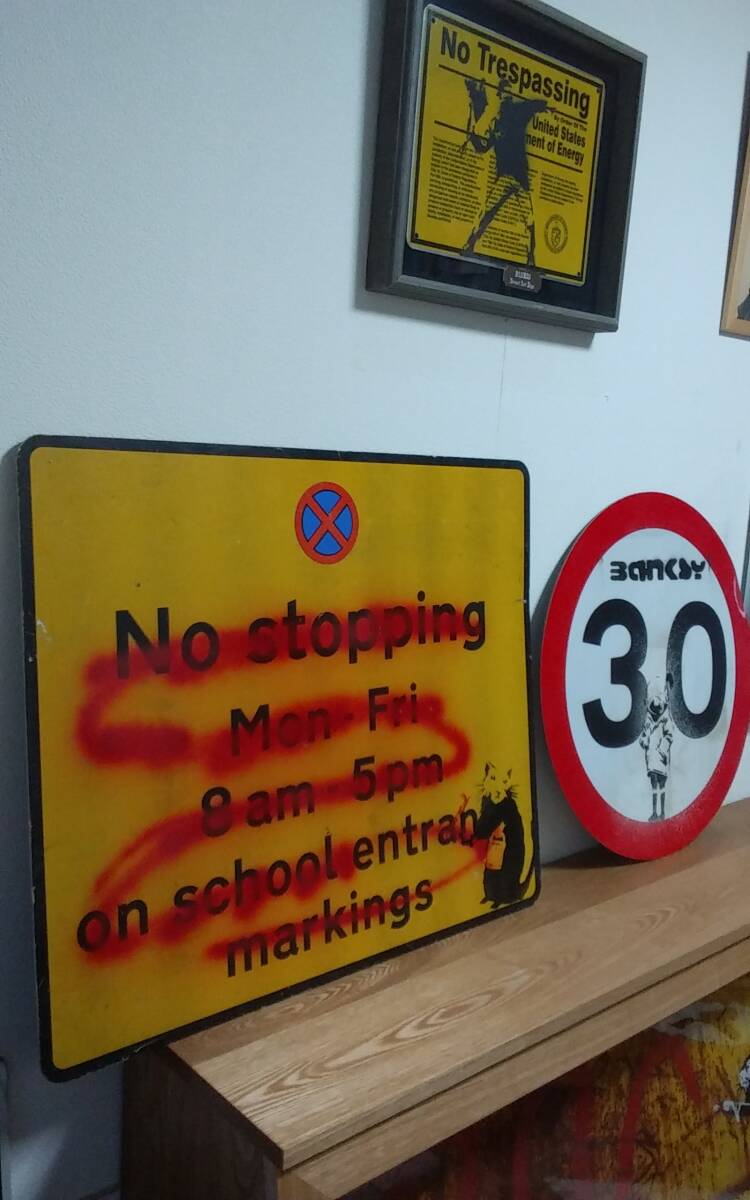 | Banksy ストリート 、ロードサイン 『No Stopping with Rat』です 貴重なイギリス作品です 日本でバンクシーが全く知られていない時代からバンクシーのストリートGraffitiをコレクションしております。 当時、海外でバンクシーのストリートグラフィティが販売されることは稀でした。日本での売買はもちろん皆無でした。現在でも本物であると思われる、イギリス作品は海外でも入手は非常に困難です。 当時よりコレクションしております貴重なバンクシー作品をお楽しみ頂ければ幸いです。