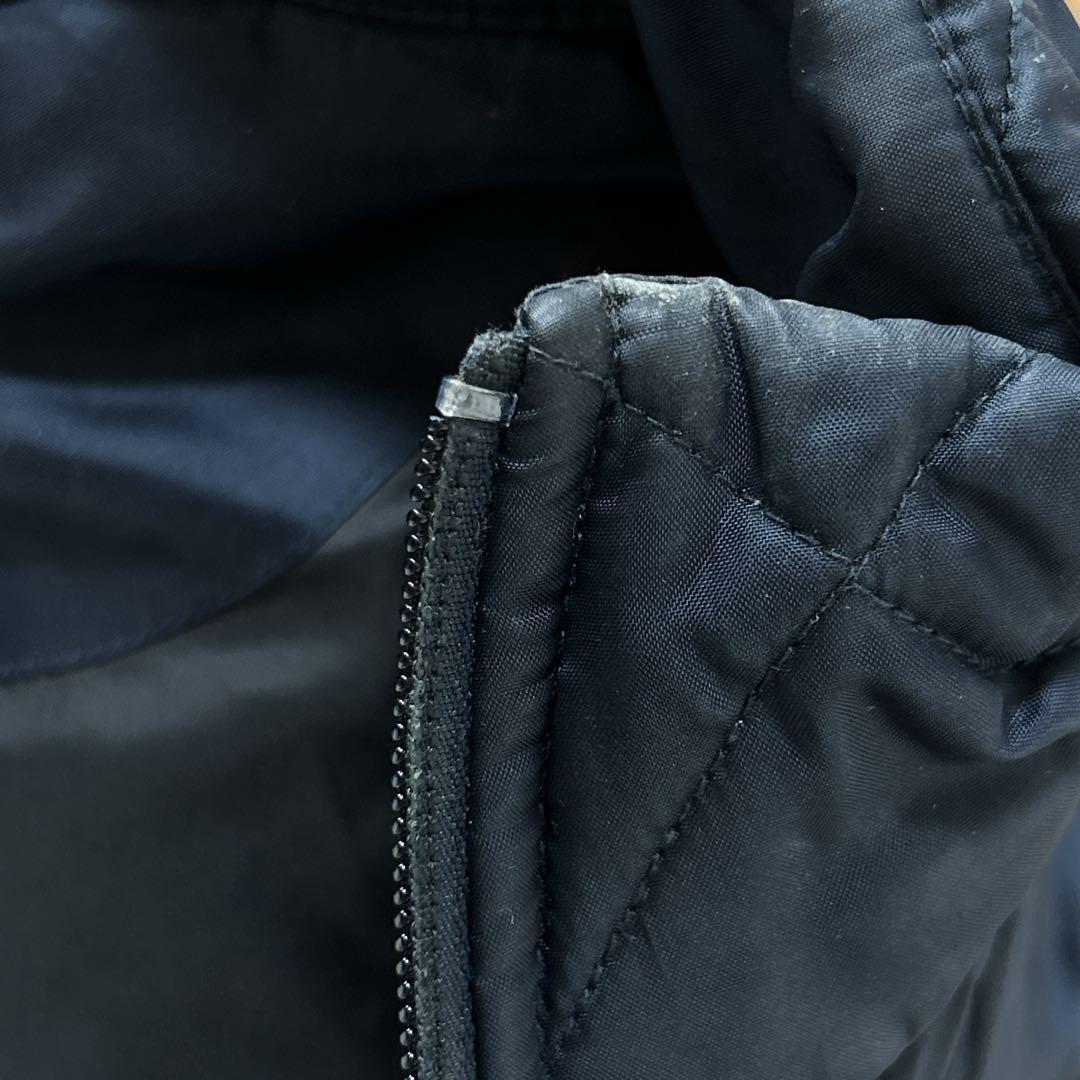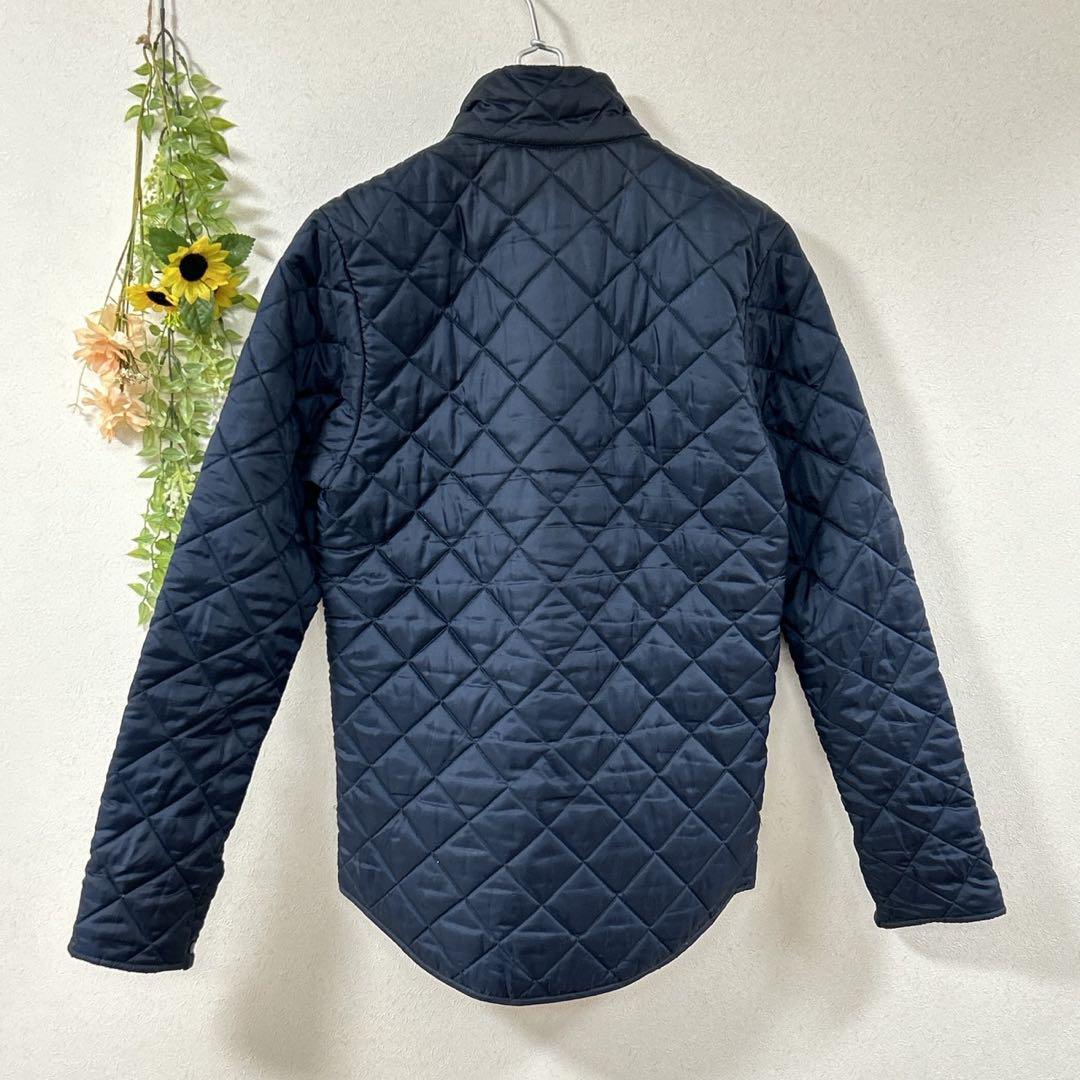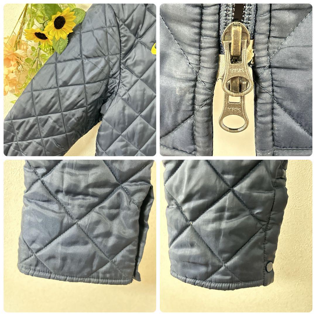 キルティングデザインが特徴で、ネイビーの色合いがスタイリッシュです。寒い季節に最適な保温性を提供します。