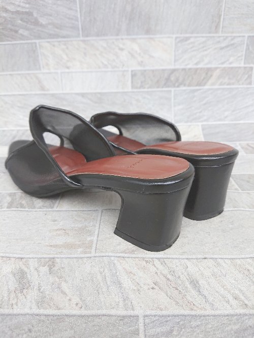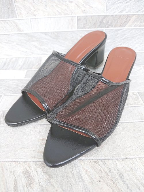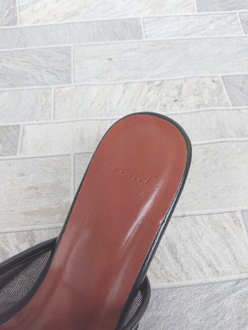 ◇ ⊂ menue メヌエ アーモンドトゥ チュール ミュール サンダル サイズLL ブラック レディース P