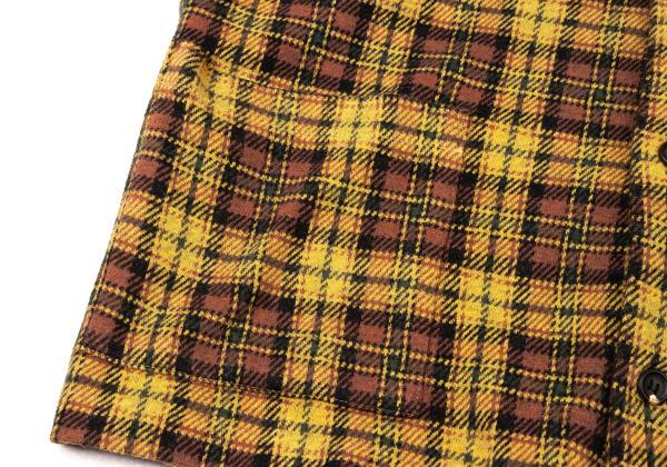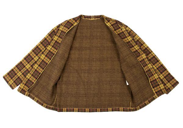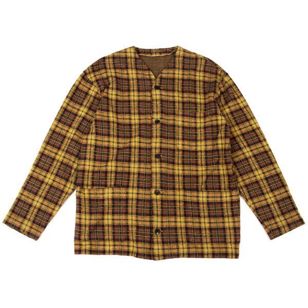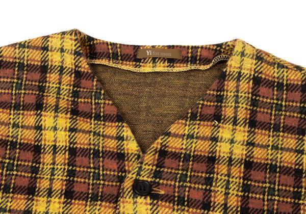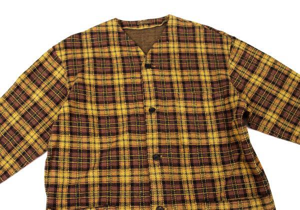 | ワイズフォーメンY's for men コットンチェックノーカラーネルシャツジャケット 黄マルチM位 |