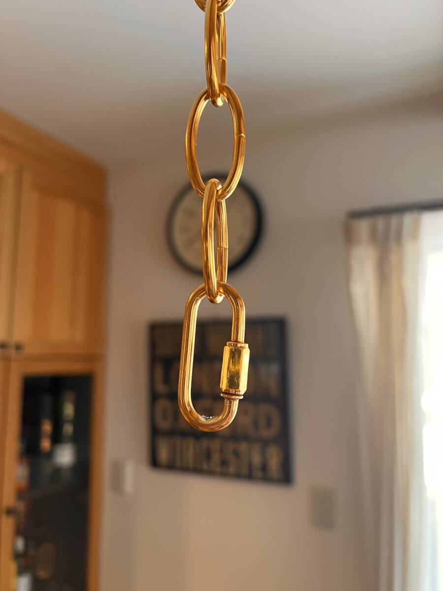 ・電線を通す穴の直径10ミリ。鎖の穴のサイズ10ミリ×35ミリ。鎖の長さ62センチ。鎖の長さはお好みに調整ができます(1個ずつ外して調整)。