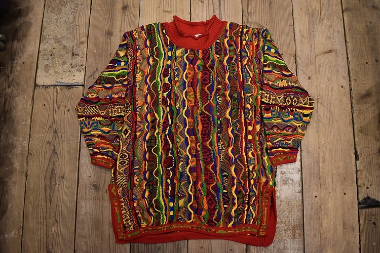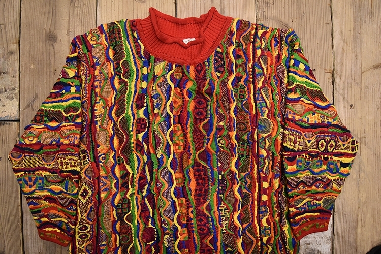 グッドスタイル◎ビンテージCOOGIクージー3DニットセーターSマルチカラーMERCERISEDCOTTONマーセライズドコットンアメカジストリートt168