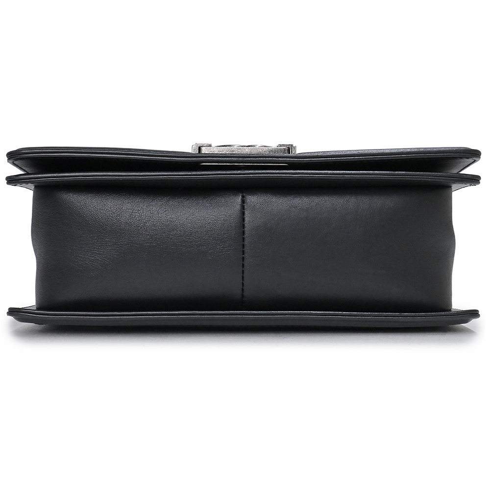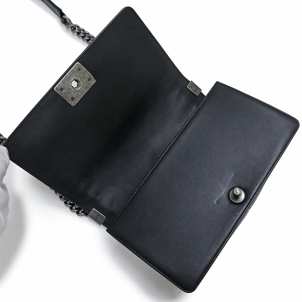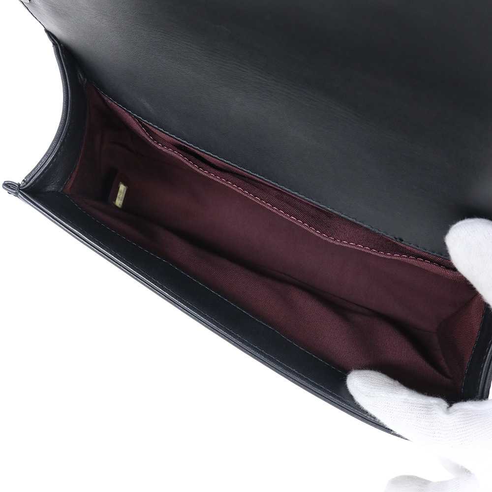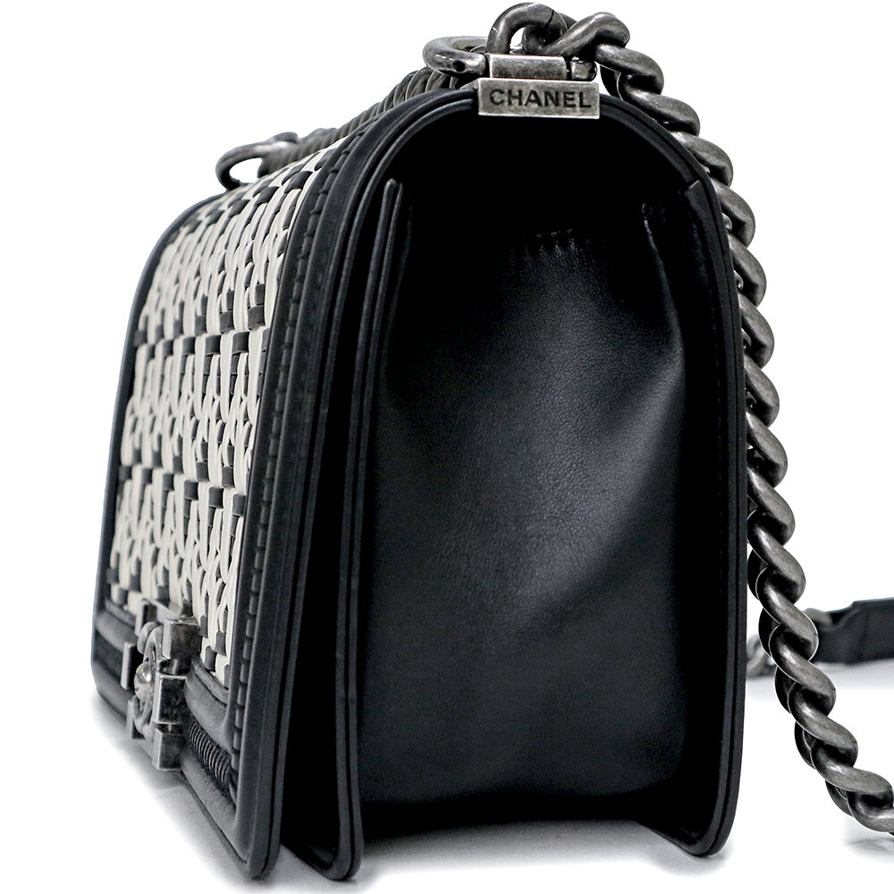 極細レザーを職人の手で丹念に編み込んで表現した幾何学模様がモダンな「ボーイシャネル」。ヴィンテージライクなチェーンの質感がシャープな印象を醸します。マチがしっかりついており、収納力も抜群。長めのチェーンで斜め掛けも可能です。