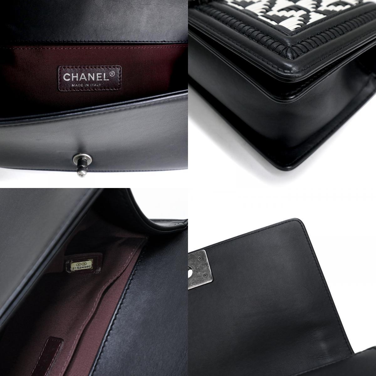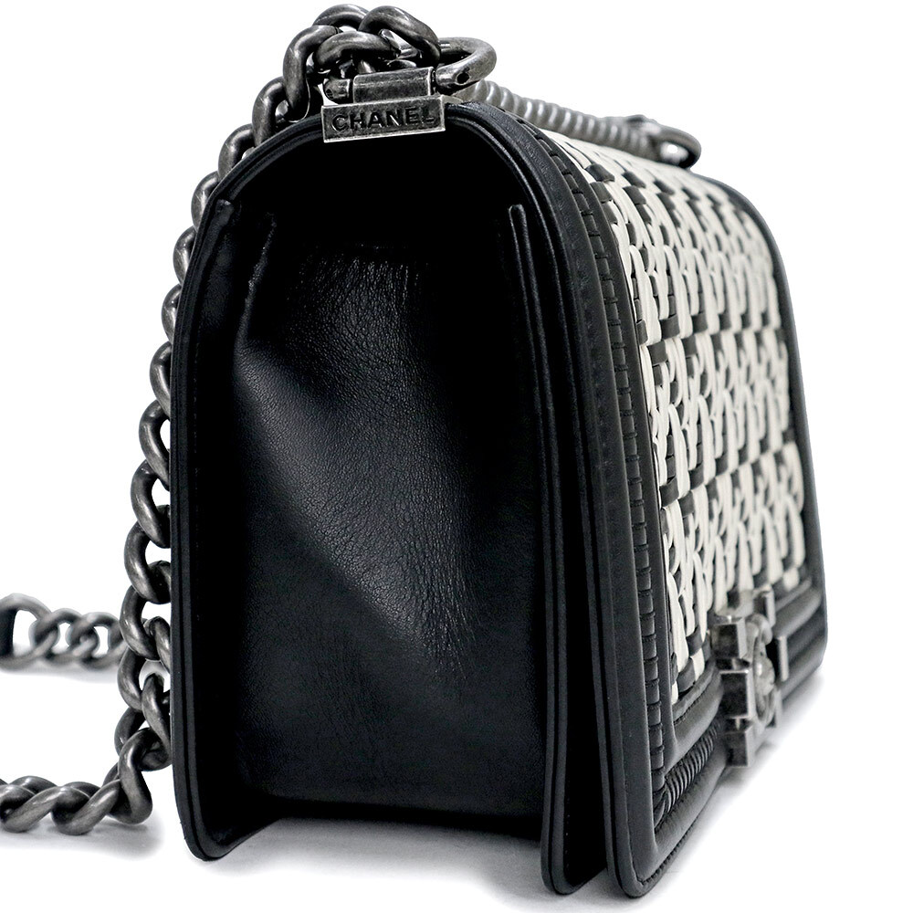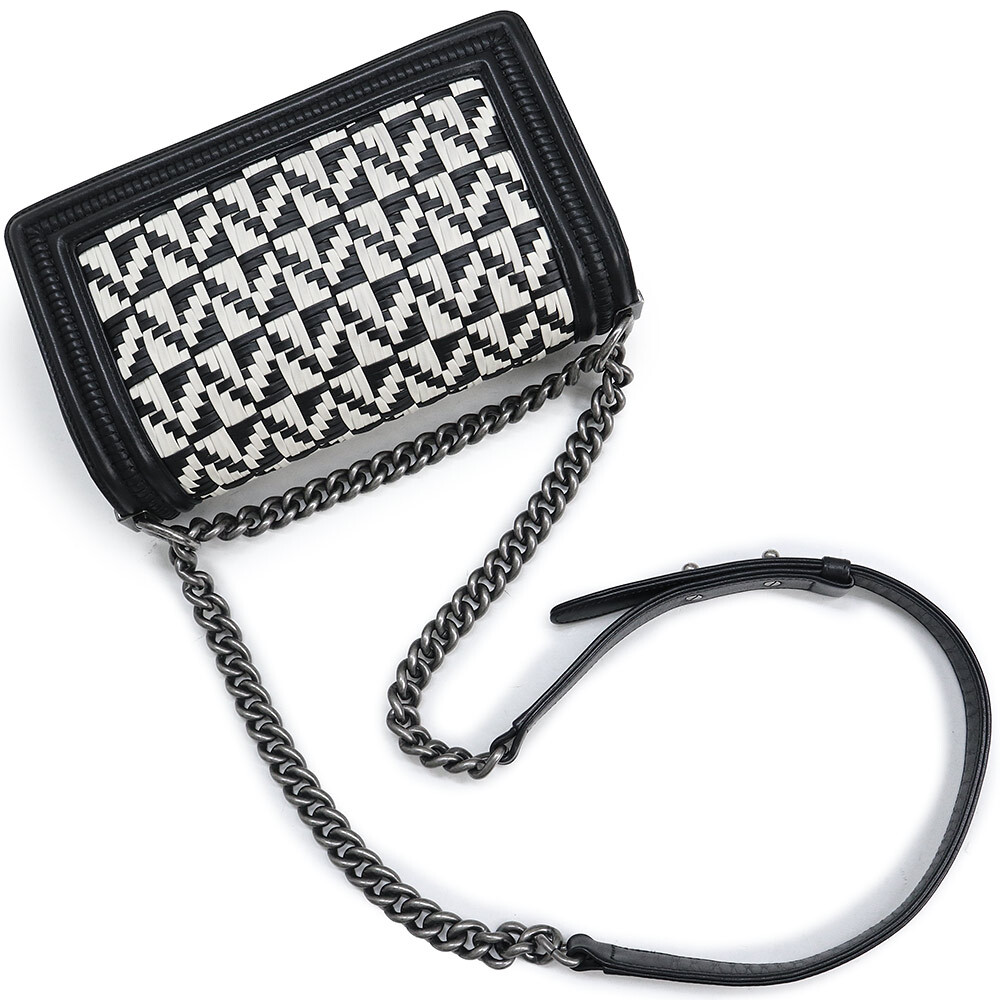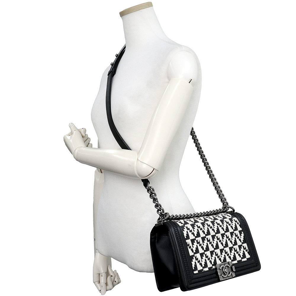 (中古)シャネル CHANEL ボーイシャネル チェーン ショルダーバッグ レザー 編み込み バイカラー ブラック ホワイト 黒 白 A67086