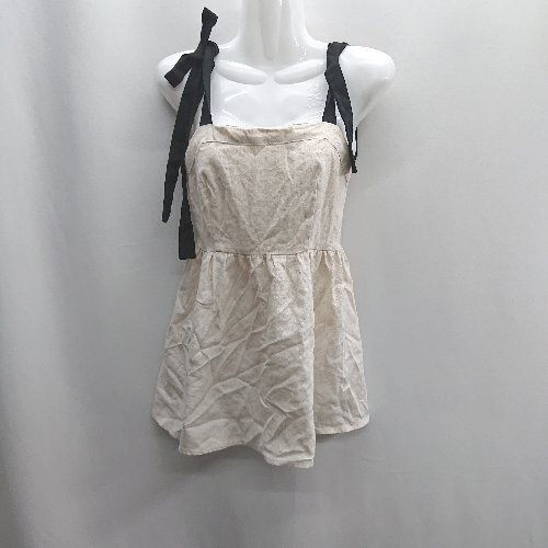 ◇ ⊂Φ callautia カラウティア リネン系 肩紐調節可能 ノースリーブ キャミソール サイズS アイボリー系 レディース E