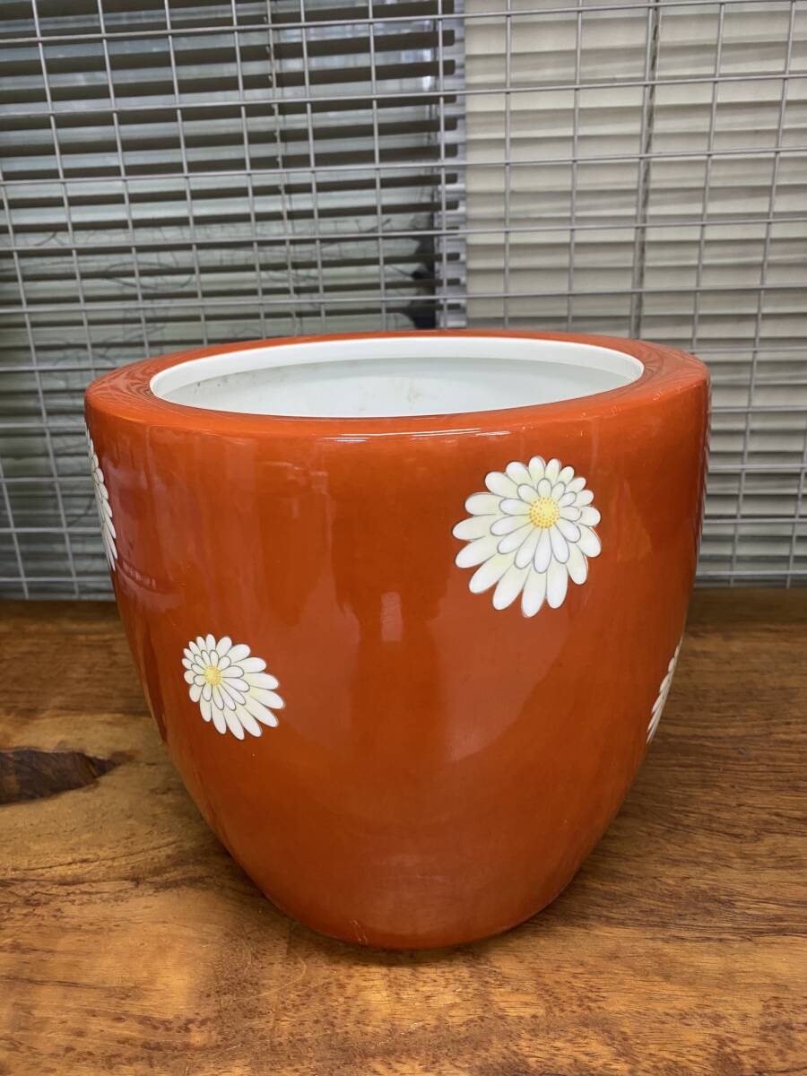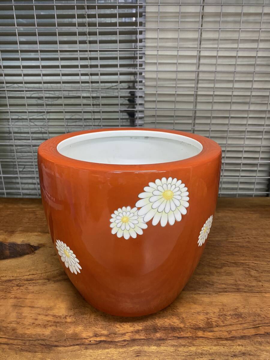 希少 オールドノリタケ 火鉢 朱色地白菊朱色時紋