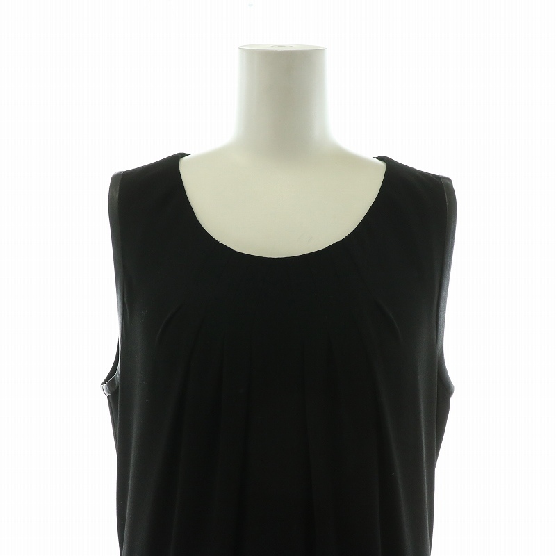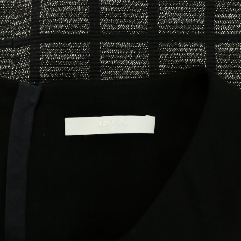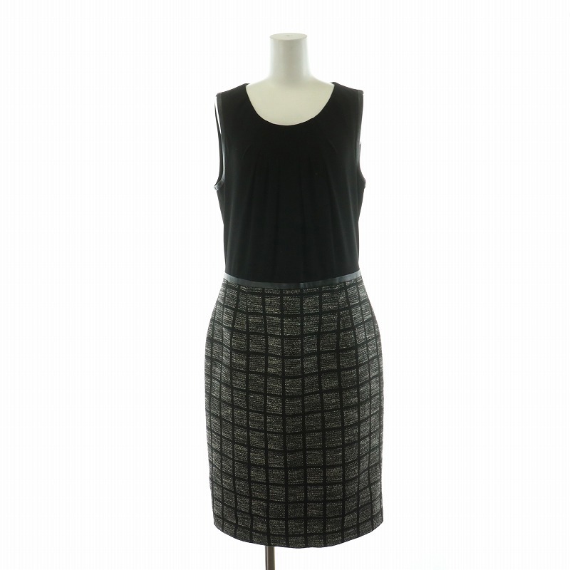 ヒューゴボス HUGO BOSS ノースリーブワンピース タック ひざ丈 チェック 切替 UK10 M 黒 ブラック グレー /NQ レディース