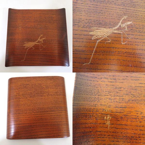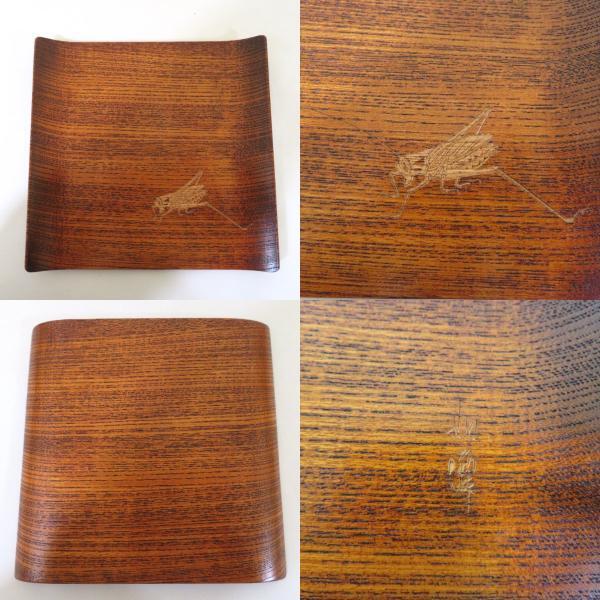 摺り漆で塗られた皿に、絵変わりで虫がそれぞれ描かれています。
