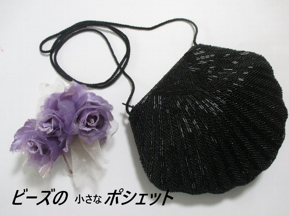 ◆ 小型、ビーズのポシェット 可愛い 小さなお集りに~貝のようなデザイン