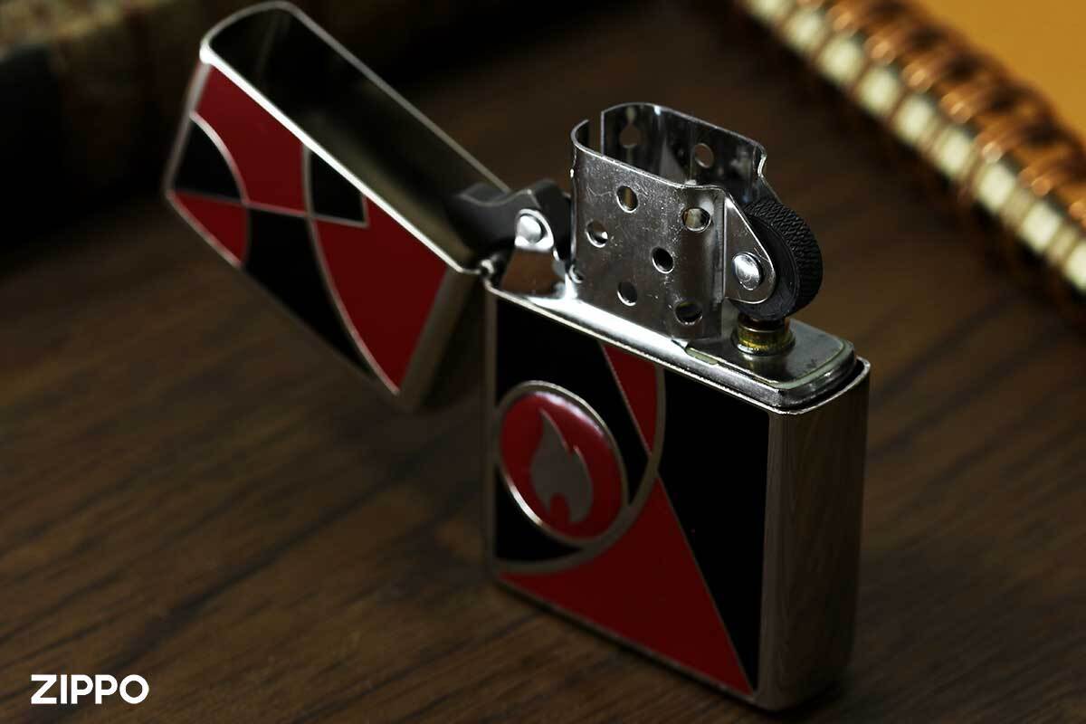 炎のアイコンフレームを取り巻くように、さまざまな形と色の組合せ模様がデザインされたZIPPO。ベースカラーとペイントカラーの配色がベストマッチ。お好みの色味で選ぶのもGood!