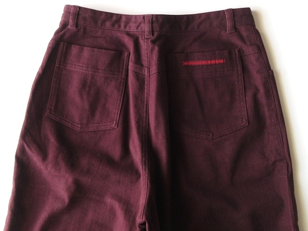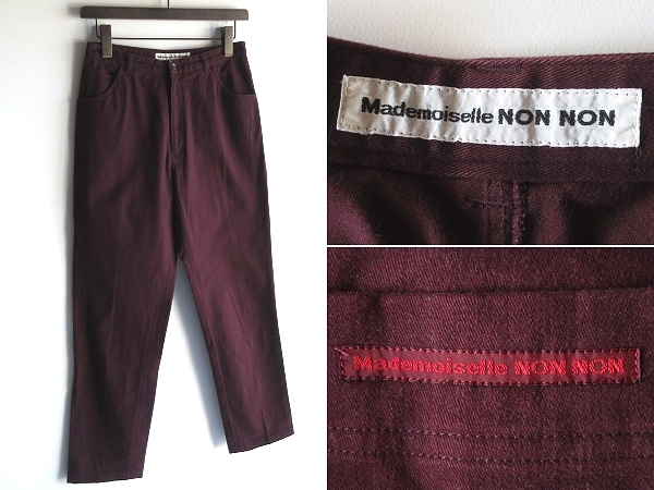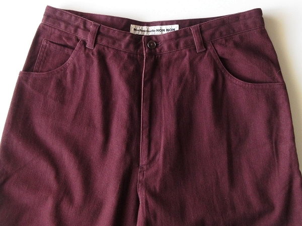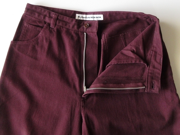 高級 Mademoiselle NON NON マドモアゼルノンノン ロゴワッペン ストレッチ コットン モールスキン パンツ L バーガンディ 日本製