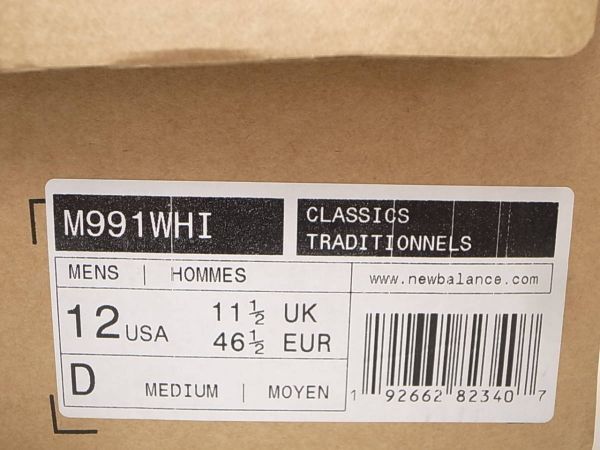 【送料無料 即決】ヨーロッパ限定 日本未発売 NEW BALANCE UK製 M991WHI 30cm US12新品ホワイトWHITE 白MADE IN ENGLAND イギリス製 英国製