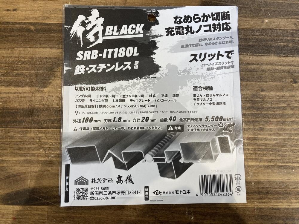 高儀 ■商品名 鉄・ステンレス兼用チップソー替刃 ■型番 SRB-IT180L |