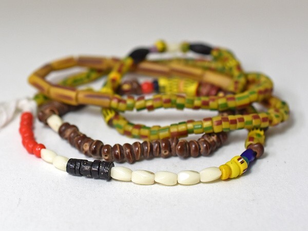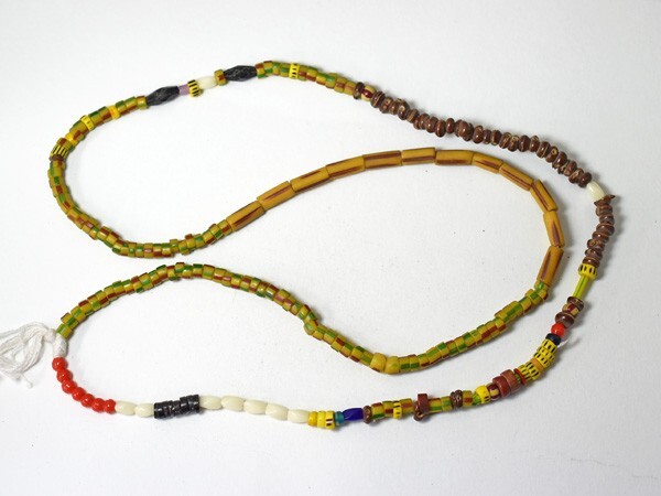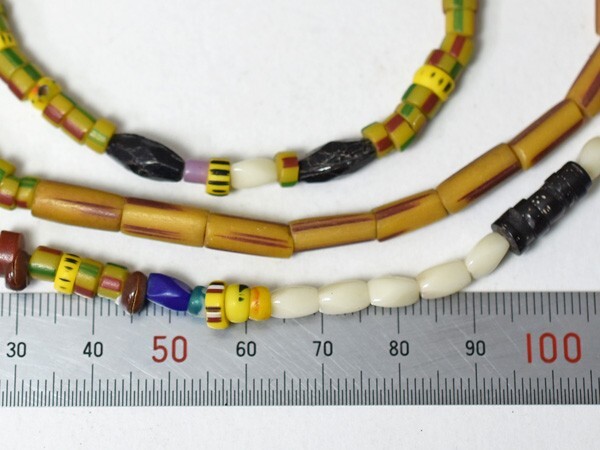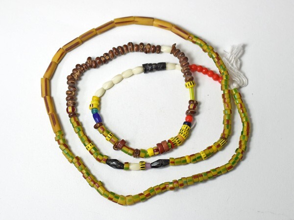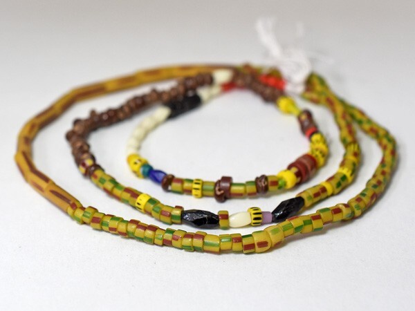西アフリカ渡りのヴェネチア産やチェコ産の数種類のアンティークガラスミックスビーズ一連です。色も形状も可愛いビーズです。ハンドメイドアクセサリ等のパーツにおススメです。大きさ、色合いにはややばらつきがあります。状態は概ね良好です。